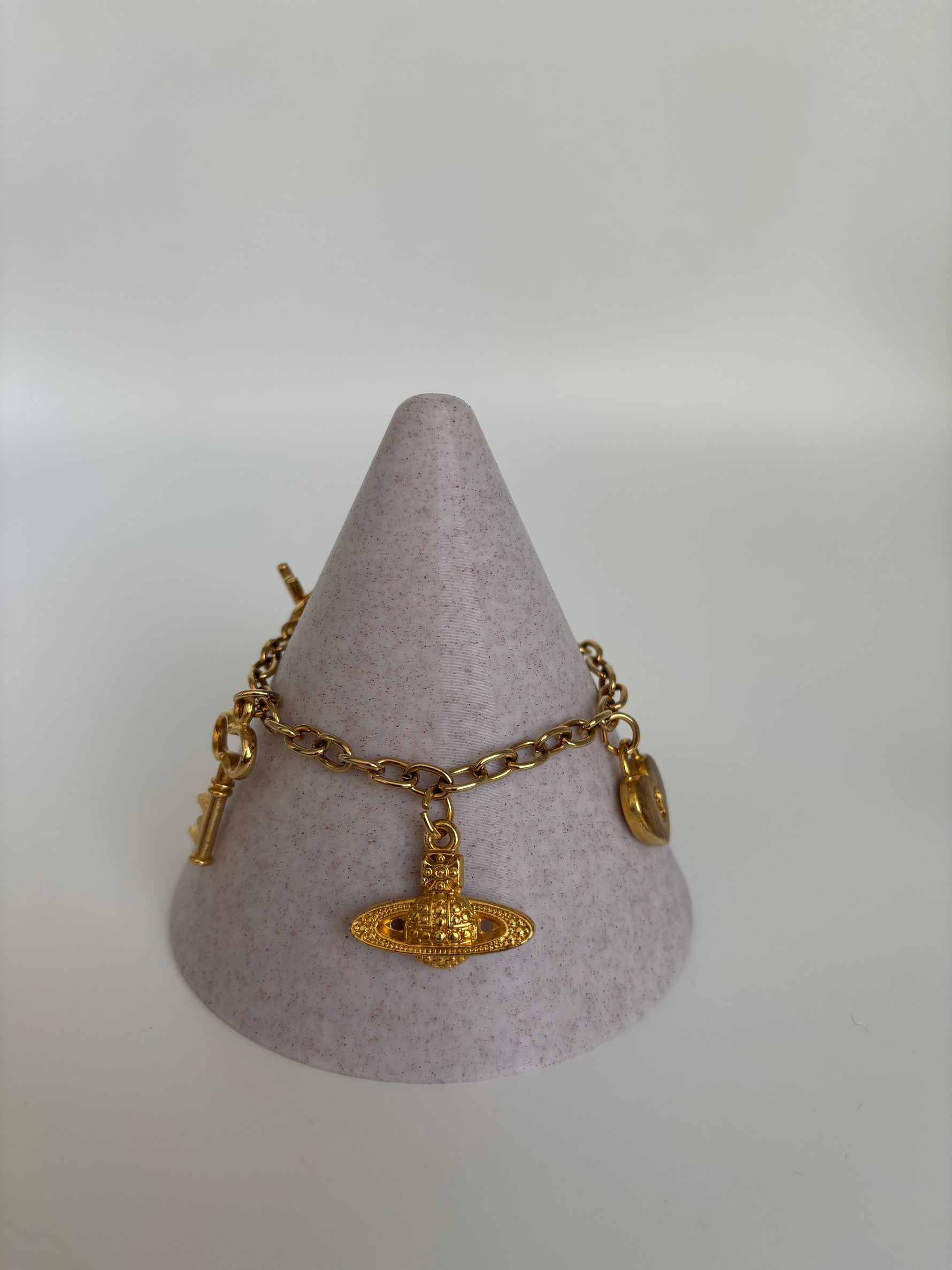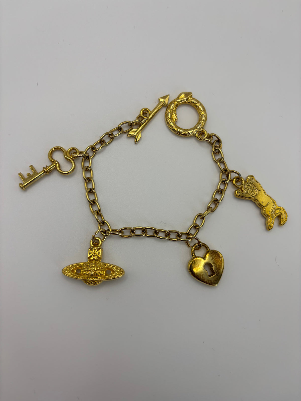 Vivienne Westwood Gold-Toned Statement Bracelet with Eternal Love Pendants 1990s