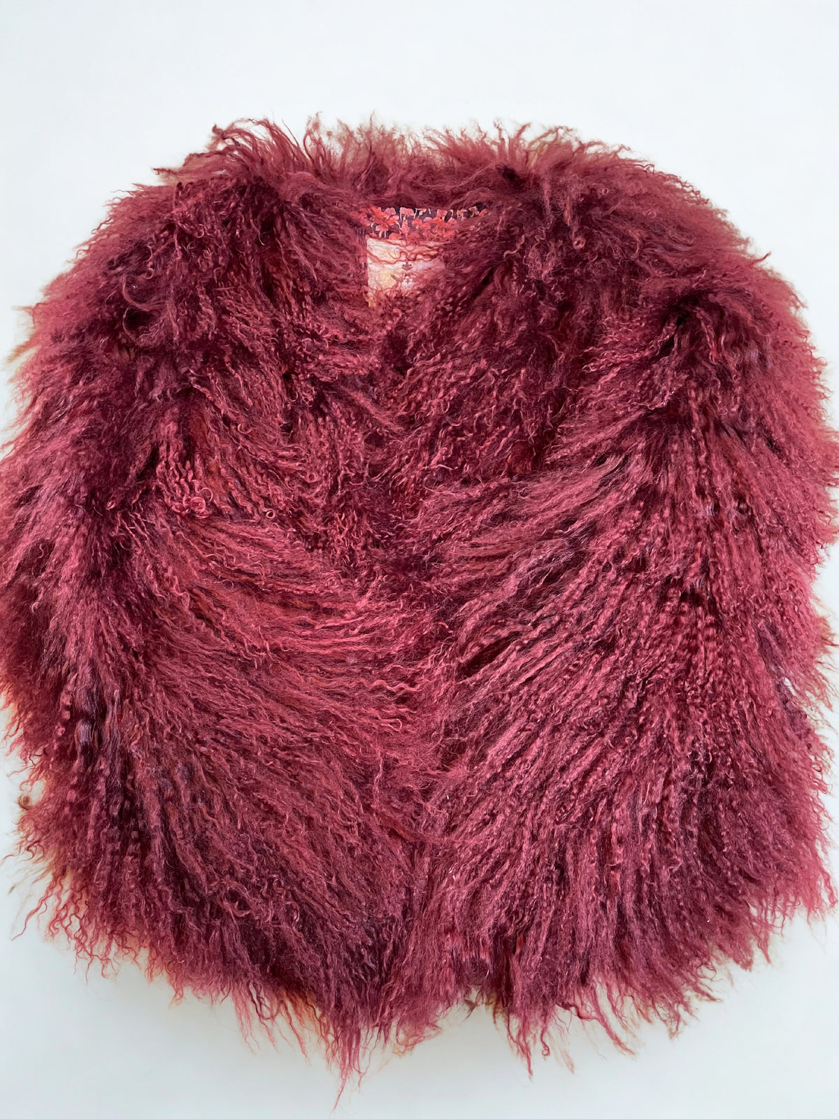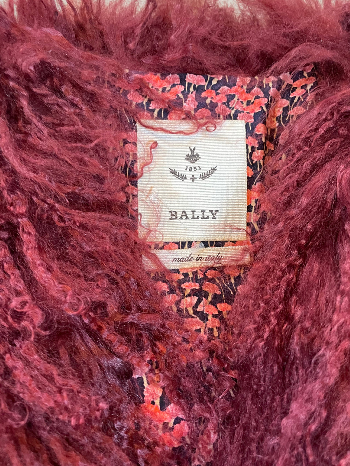 Bally Absolutely Stunning Genuine Mongolian Sheepskin Short Fluffy Coat In Burgundy Size S