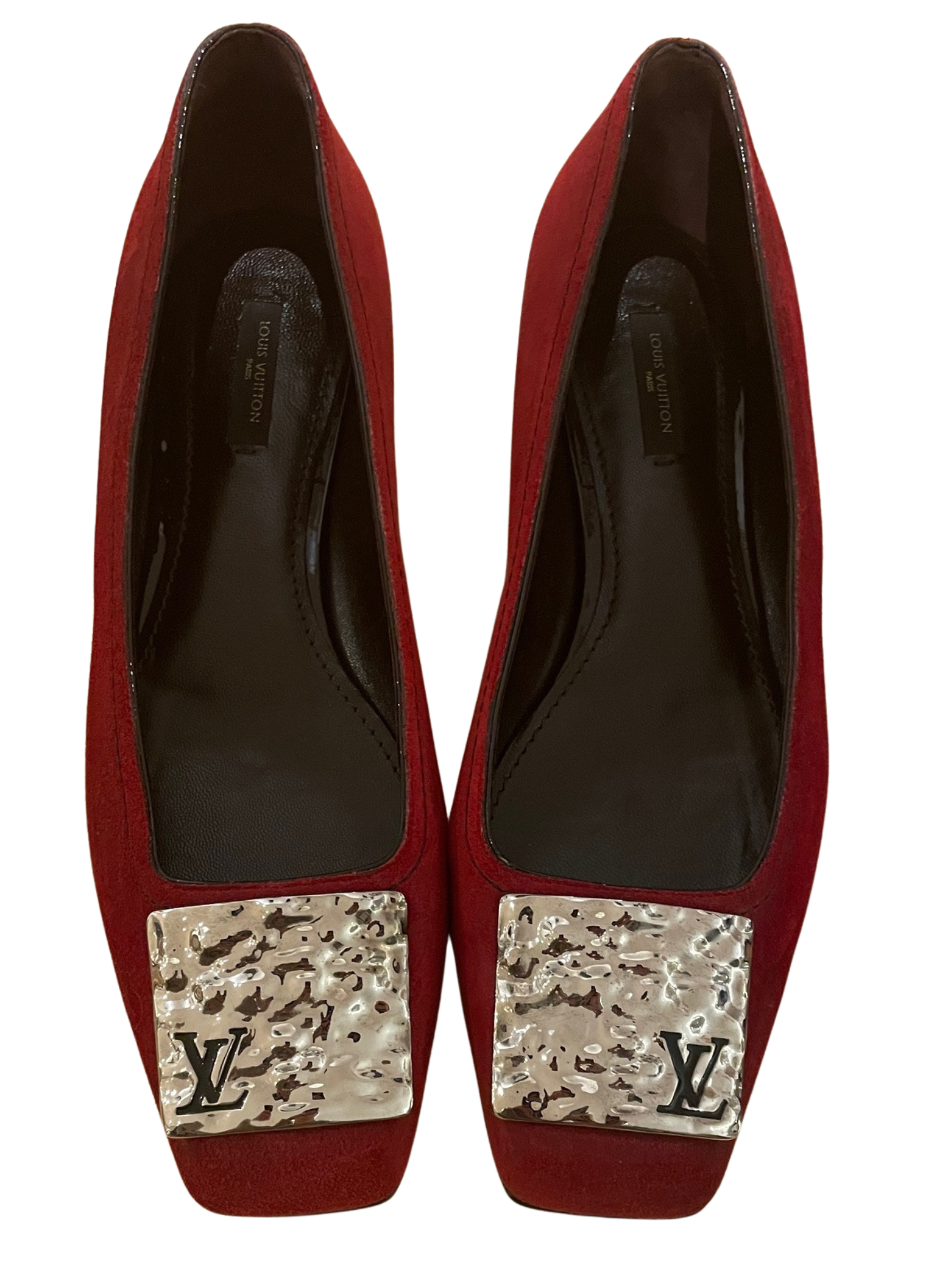 Louis Vuitton Stunning Lauren Ballerina Dark Red Brushed Leather Shoes with Silver Logo Plate EU 40
