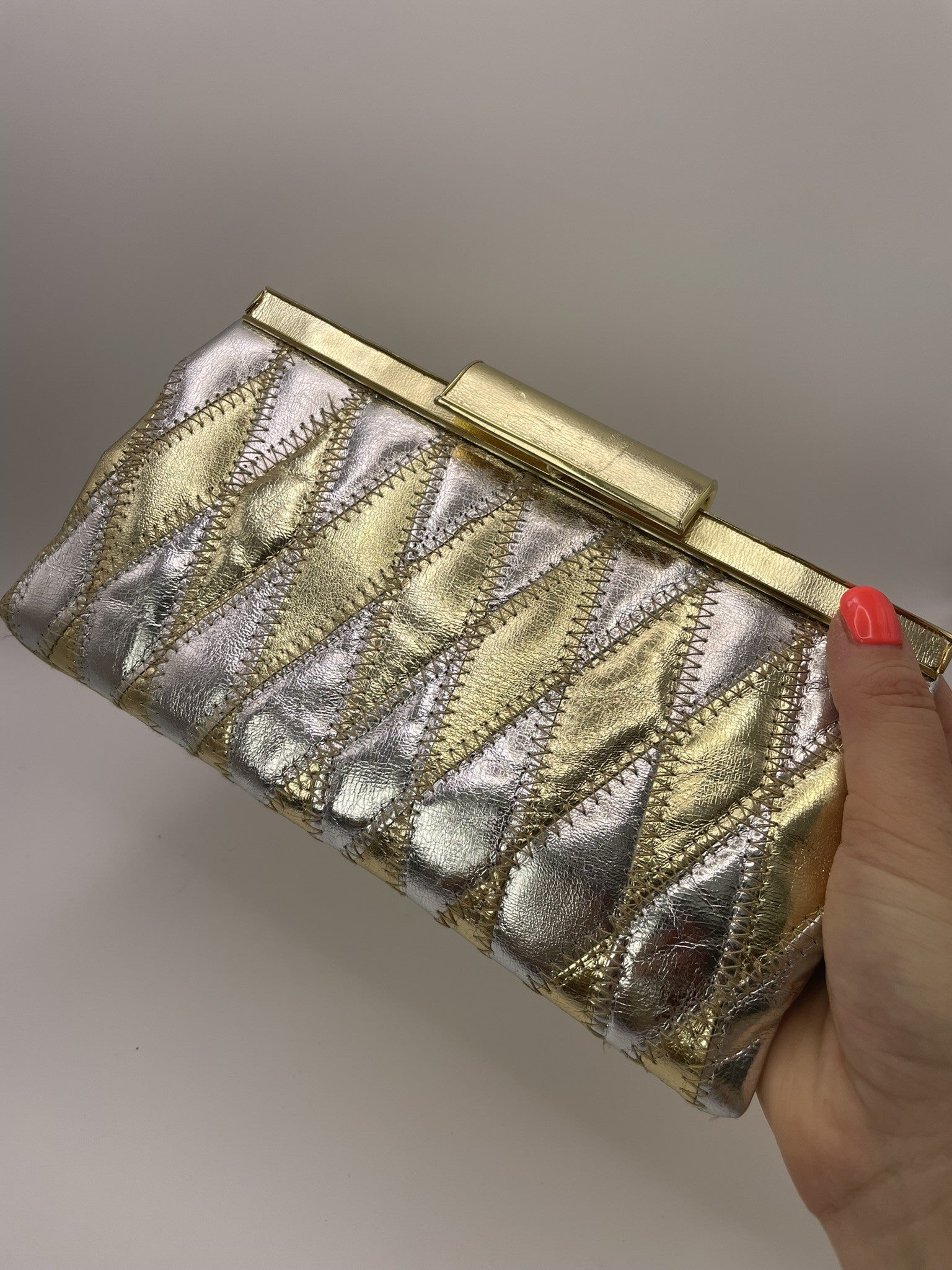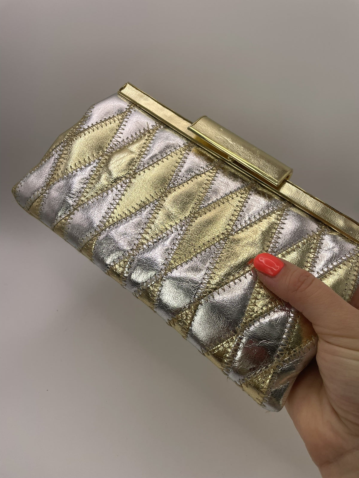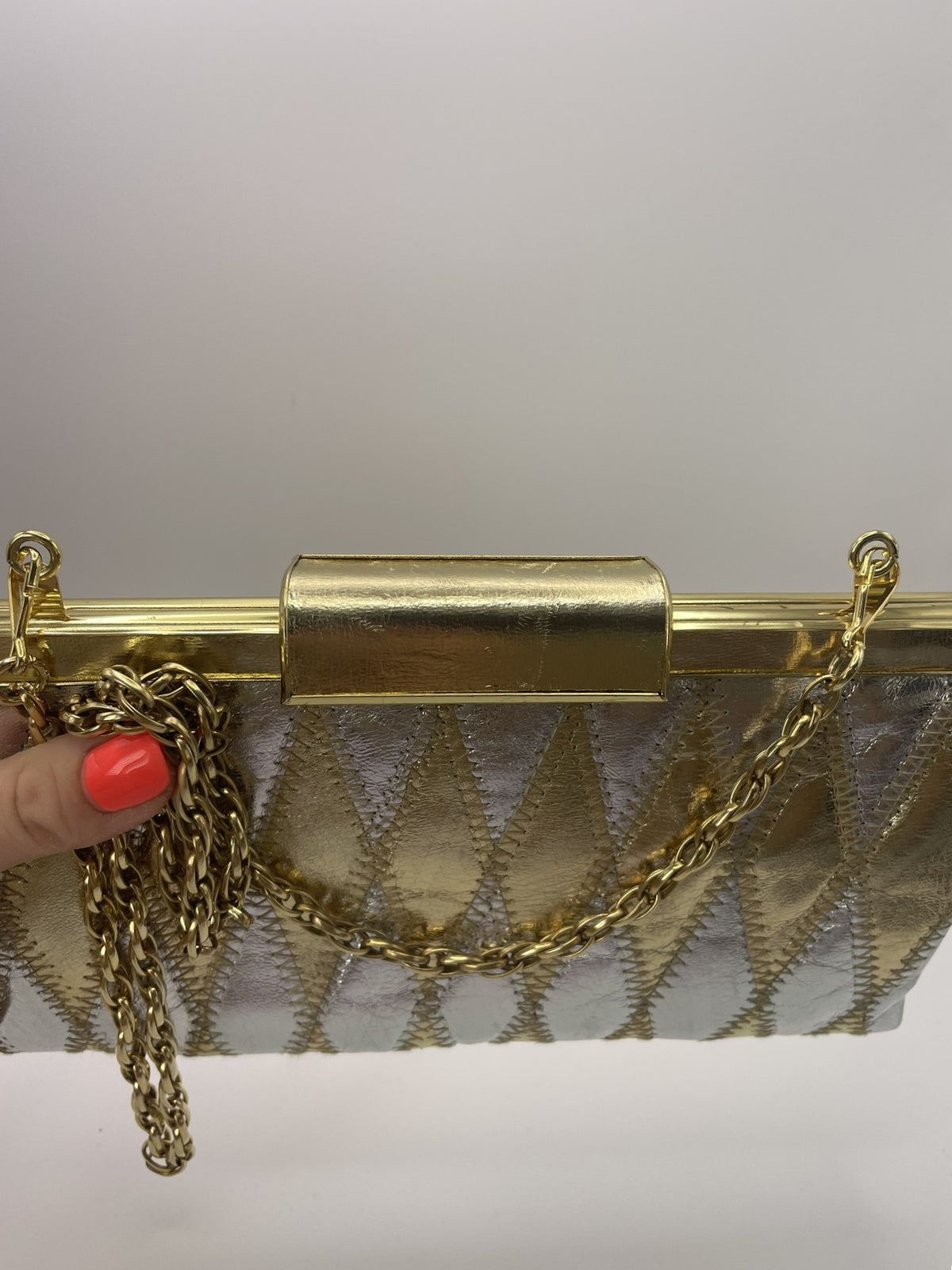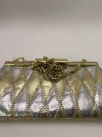 Jane Shilton Vintage Leather Gold & Silver Clutch With Chain Strap