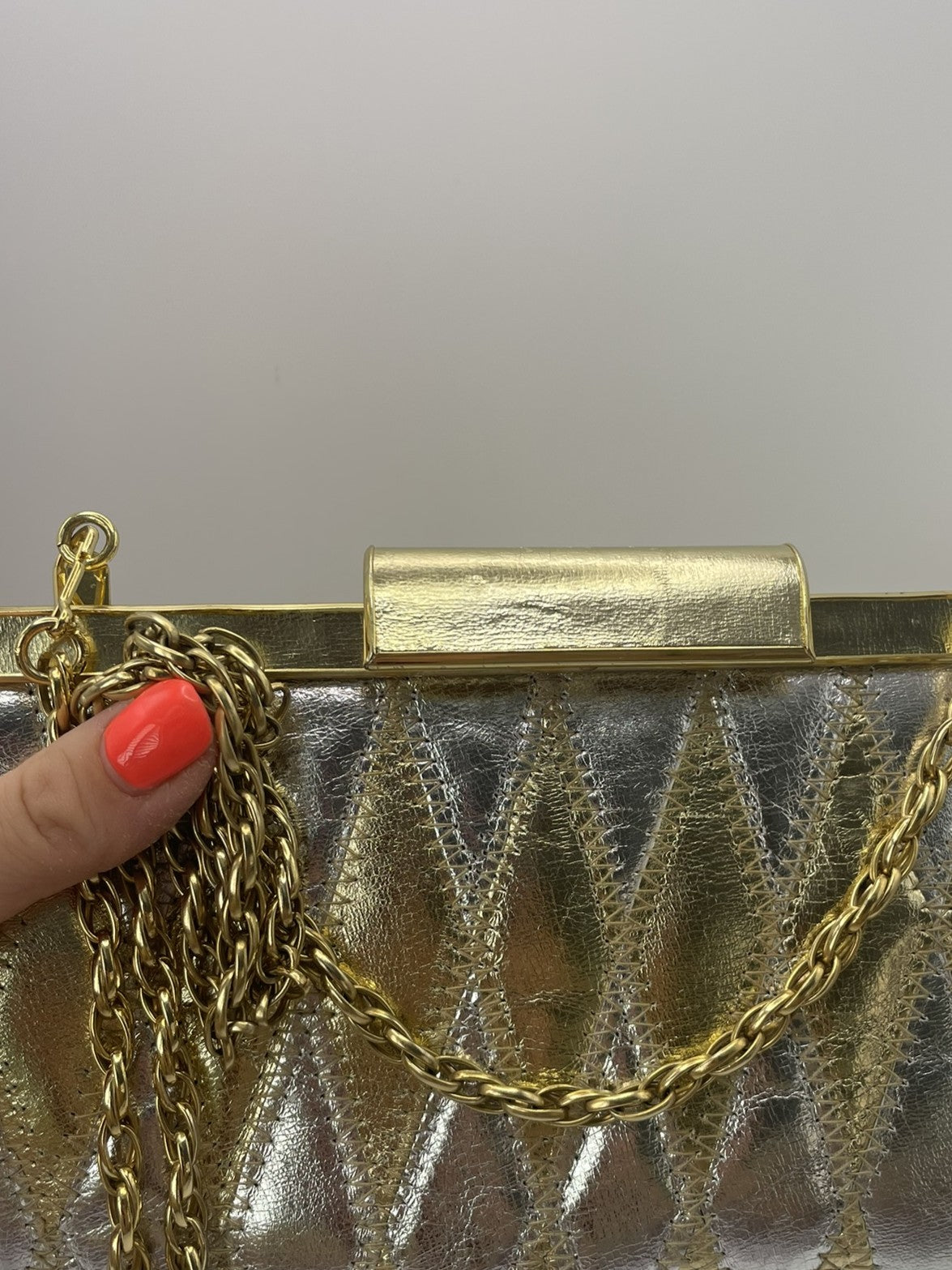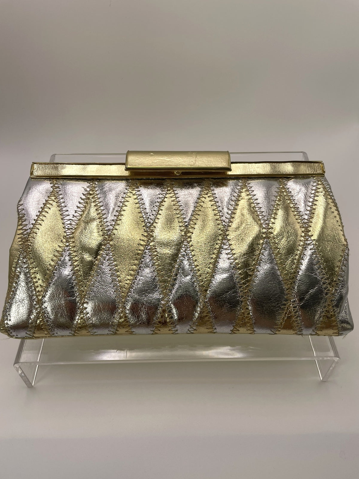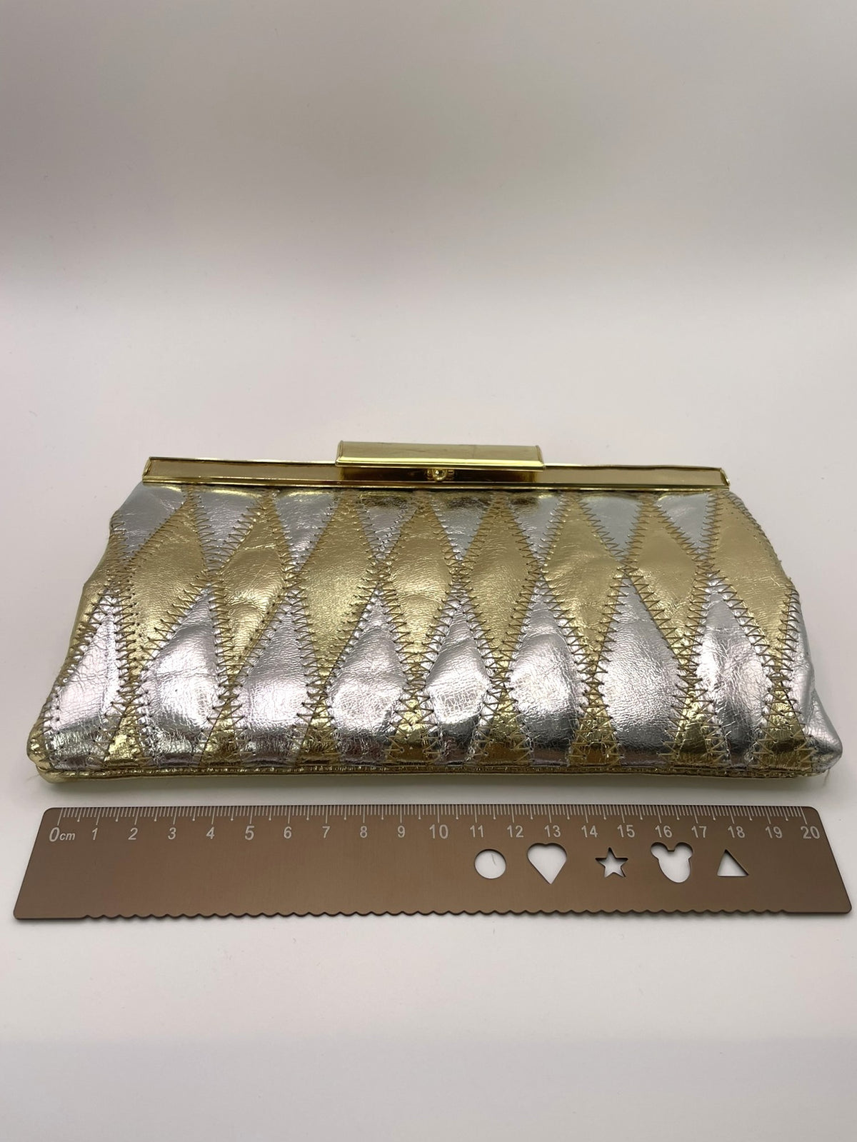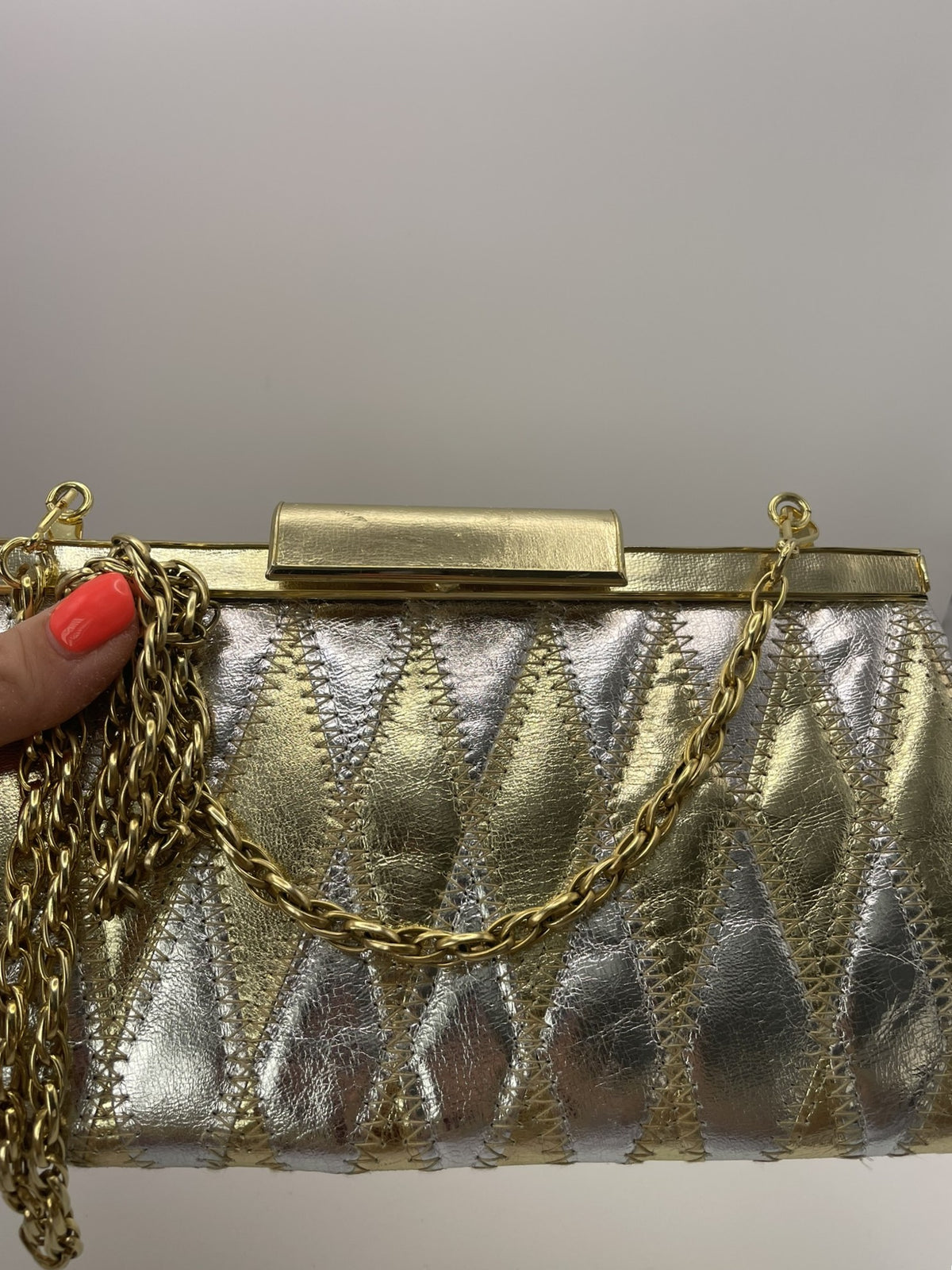 Jane Shilton Vintage Leather Gold & Silver Clutch With Chain Strap