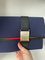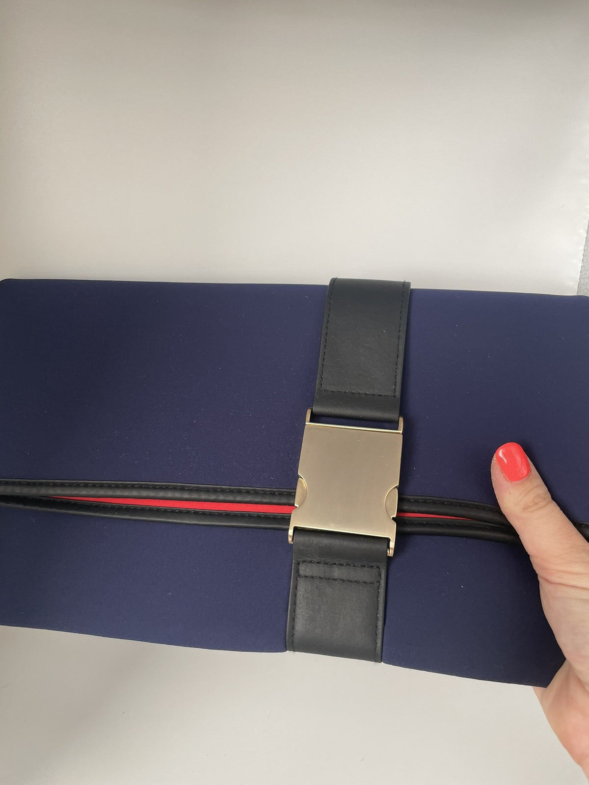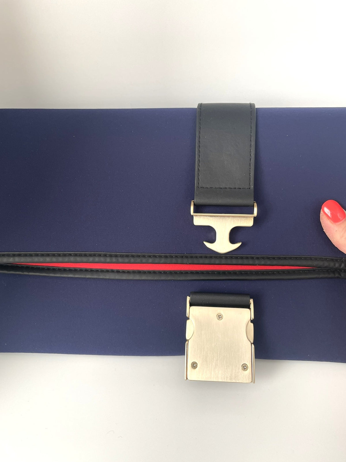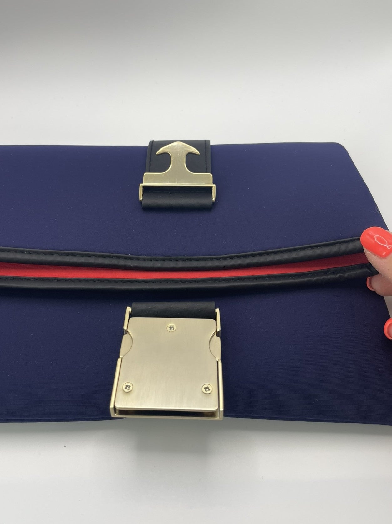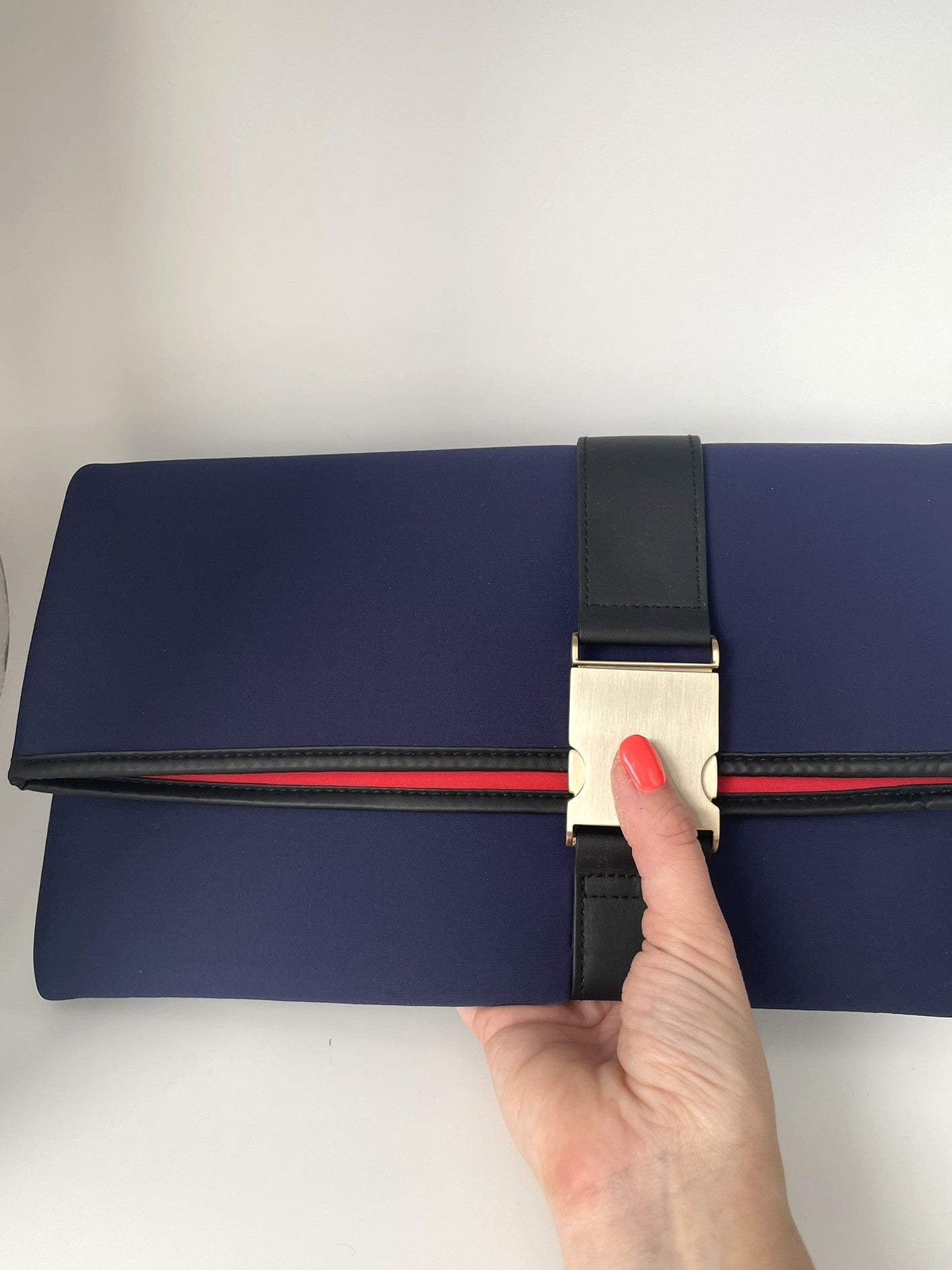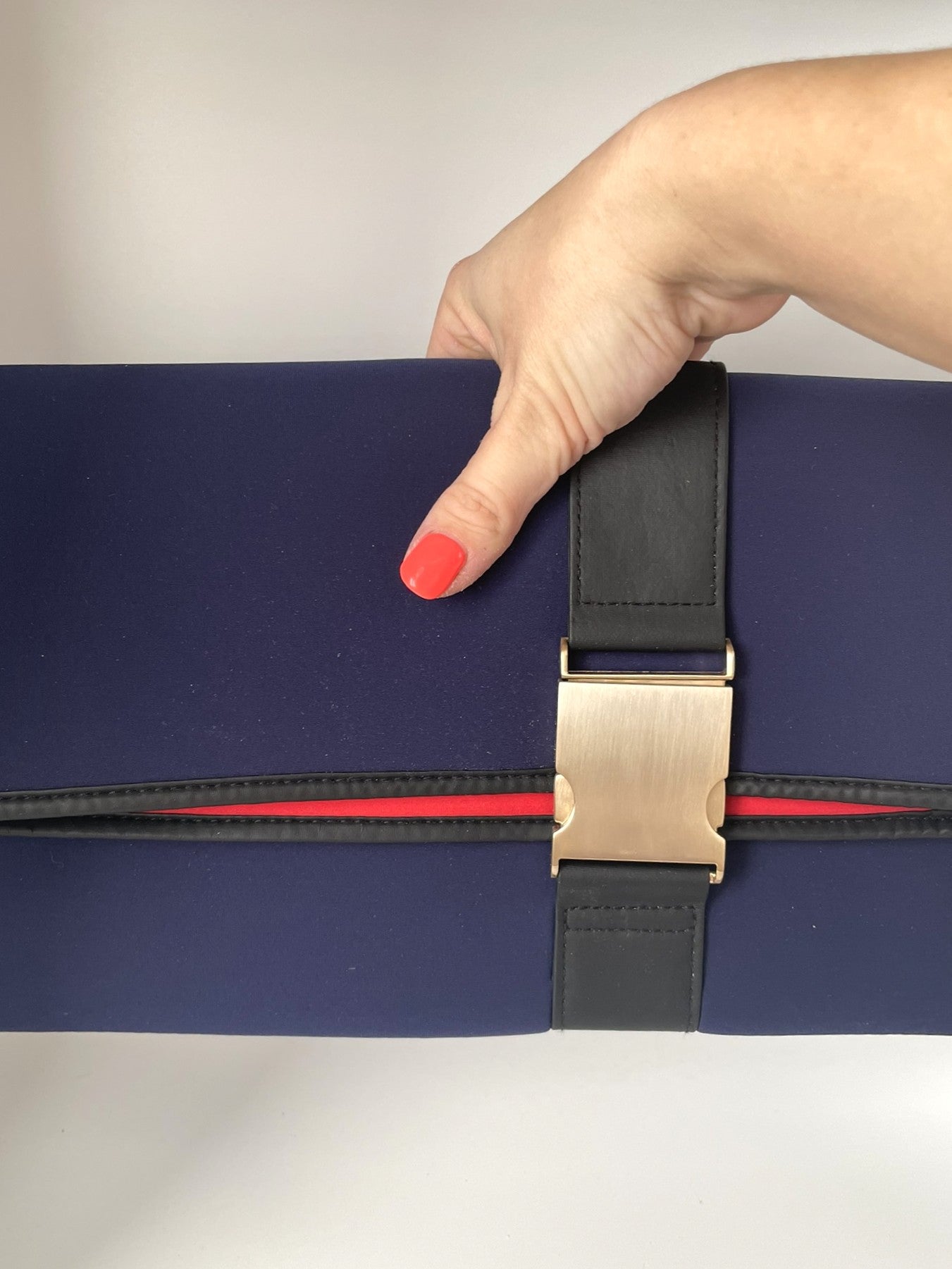 If you’re looking for a practical yet eye-catching clutch in a versatile navy tone, with a striking red interior and a design you won’t see on anyone else… you can stop searching. This piece is beautifully unusual, wonderfully practical, and a true conversation starter.