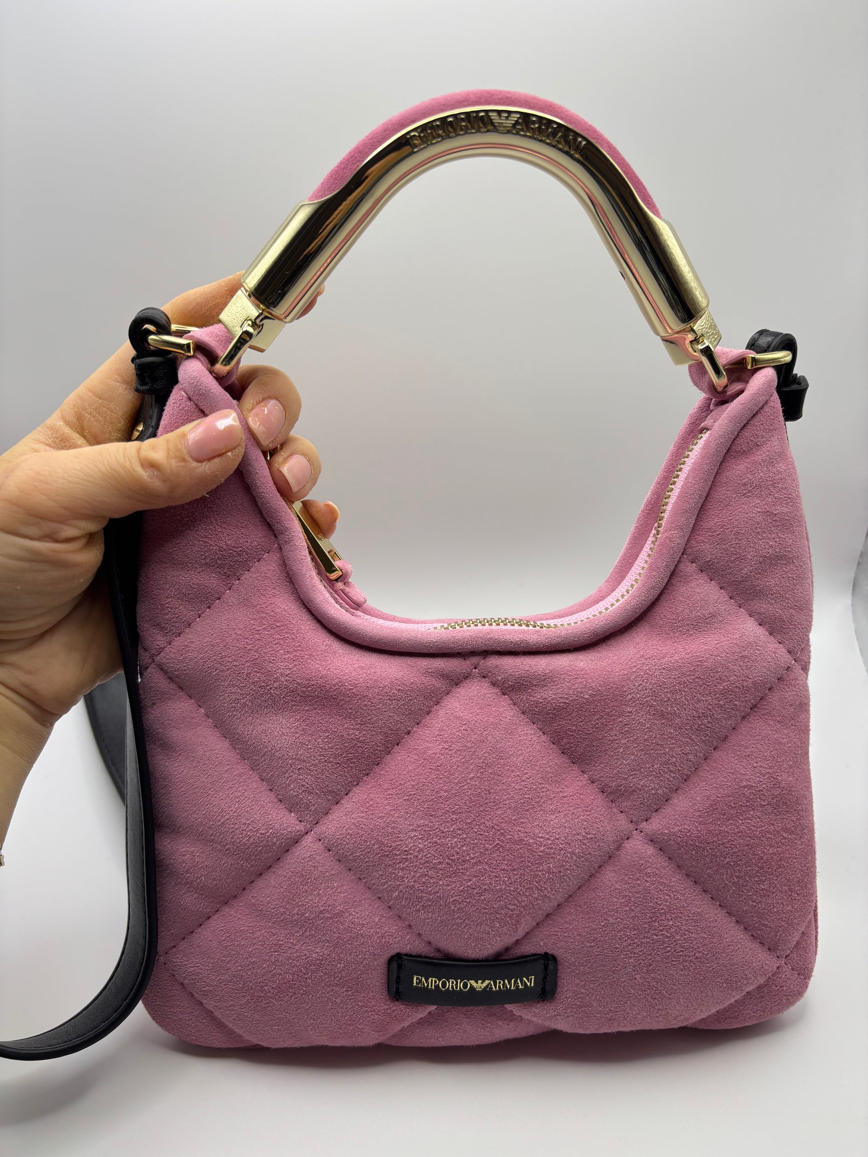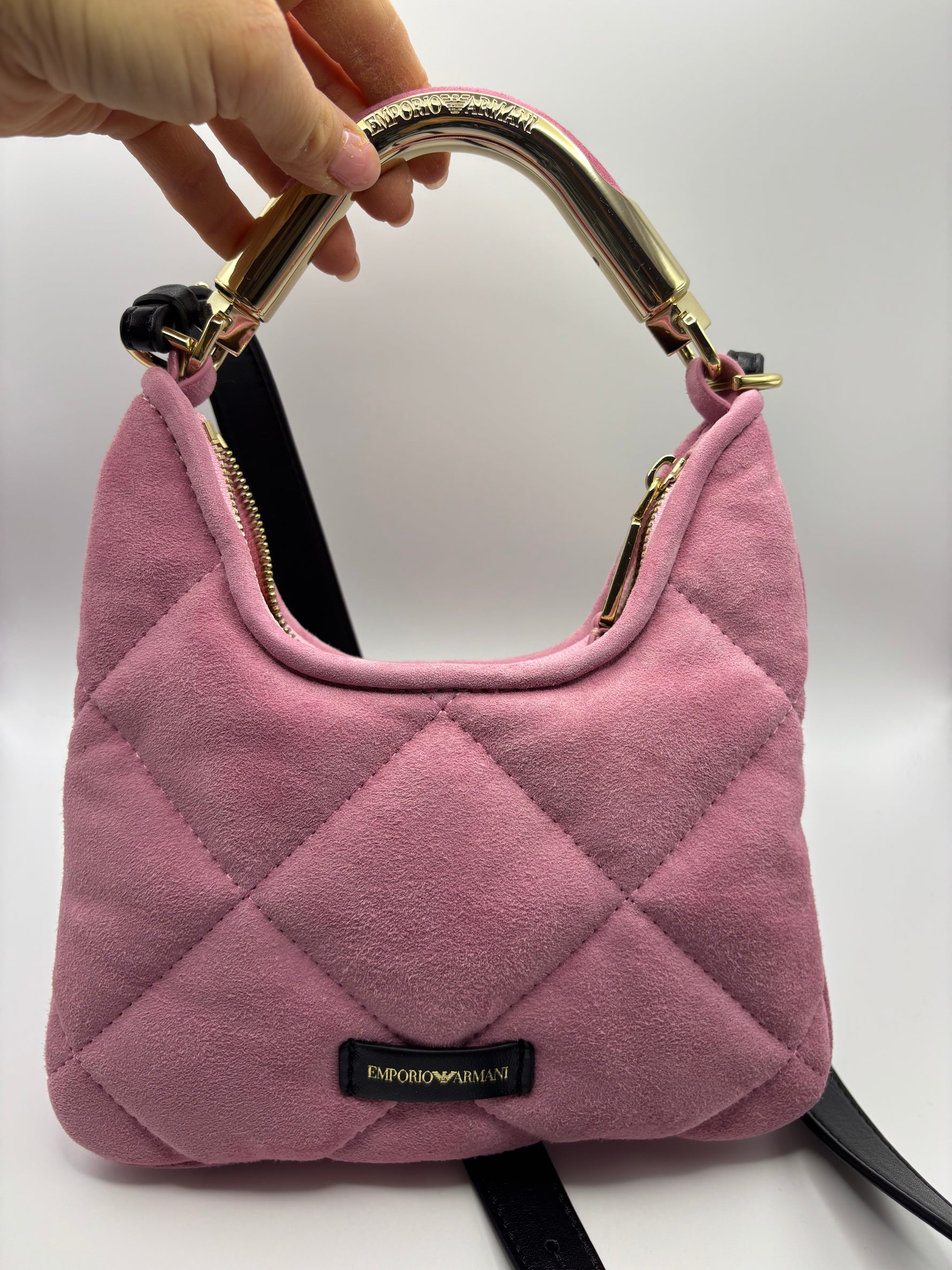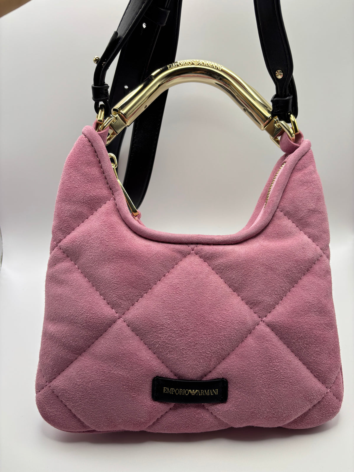 The Cutest Brand New Pink Quilted Suede Emporio Armani FW22 Handbag