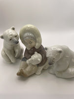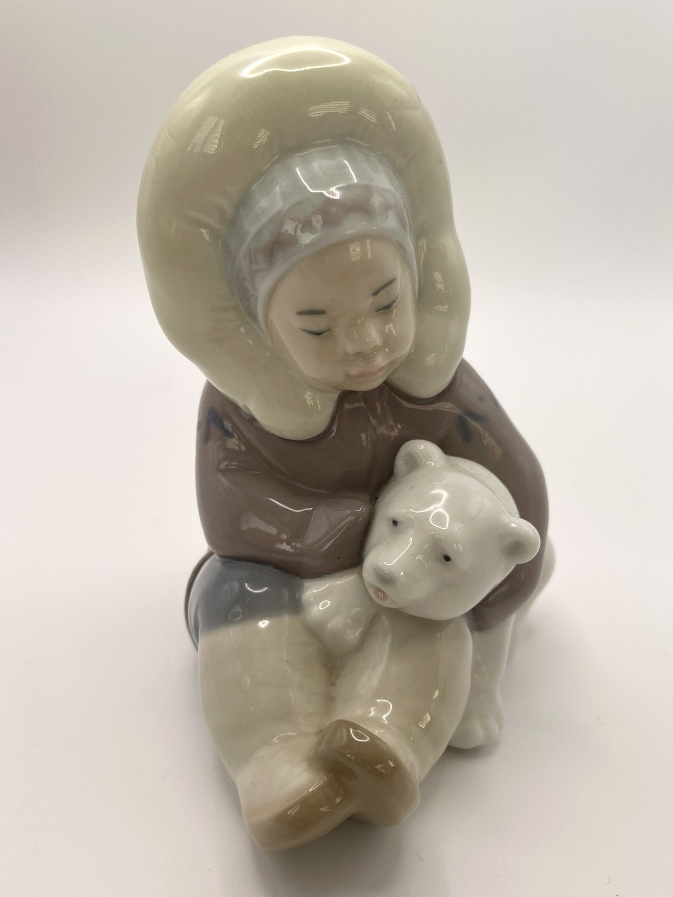 Lladró Cute Little Inuit Child Hugging A Polar Bear Cub