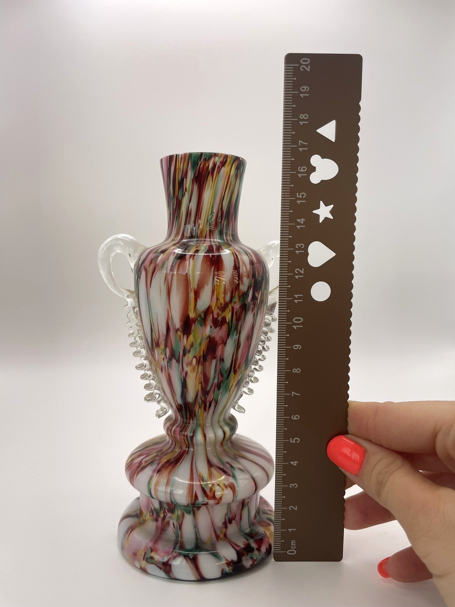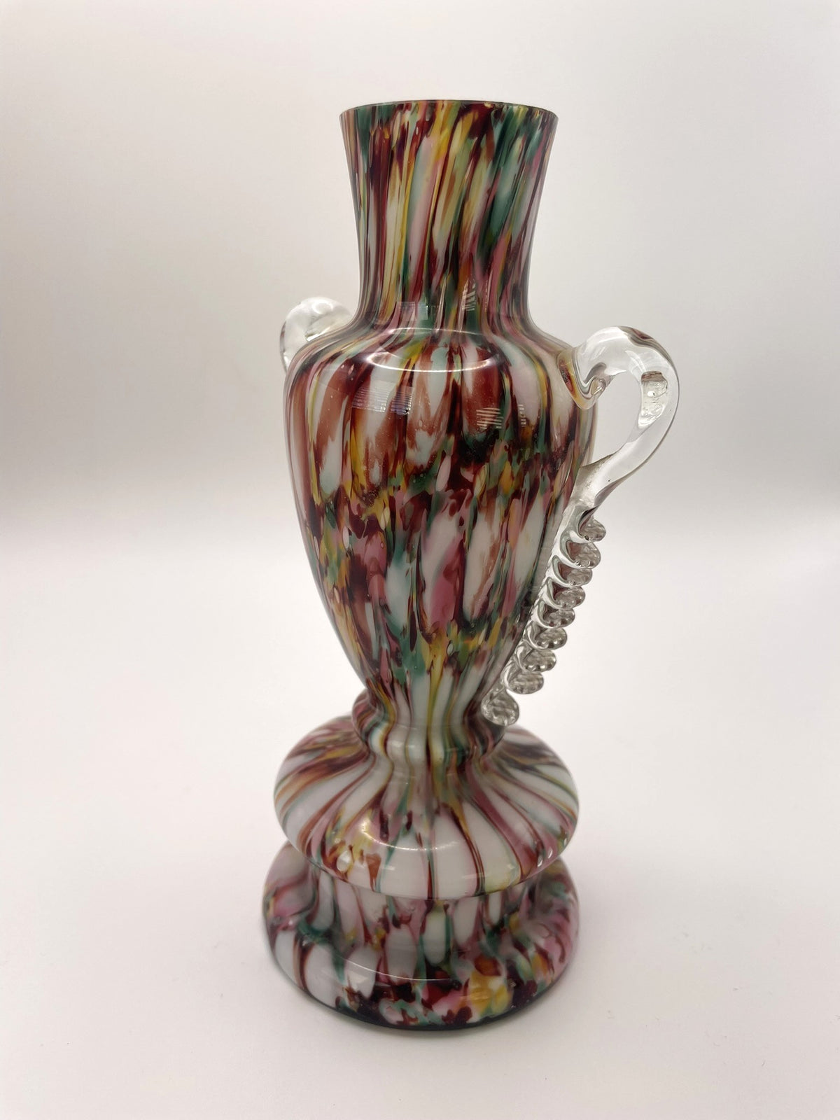 Welz Bohemian Honeycomb Multicoloured Splatter Glass Trophy Vase