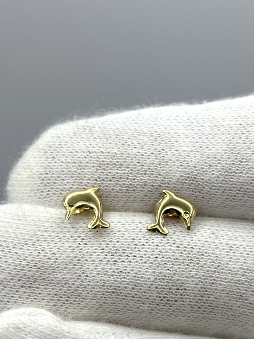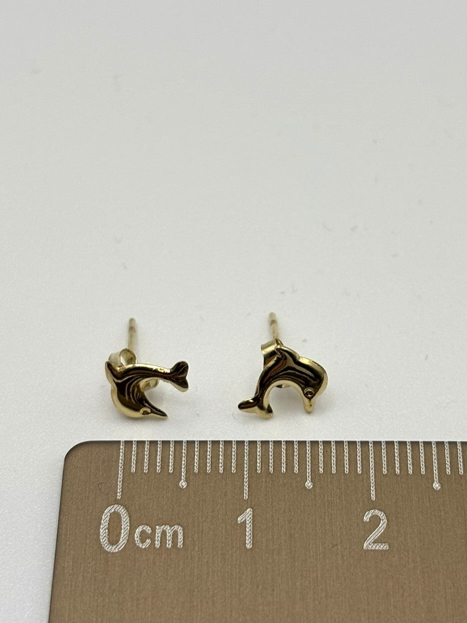 9ct Yellow Gold Jumping Dolphin Stud Earrings