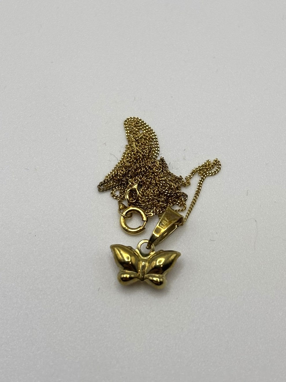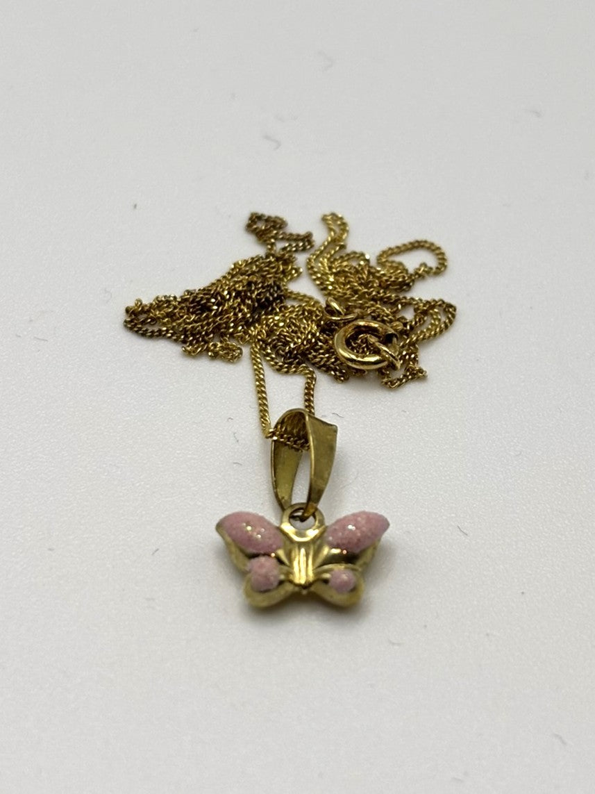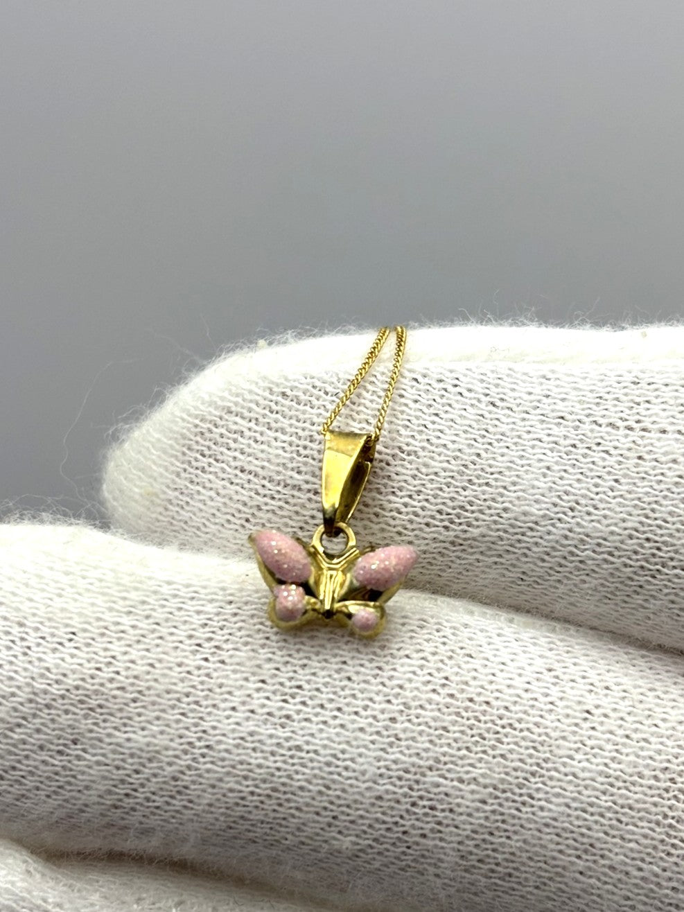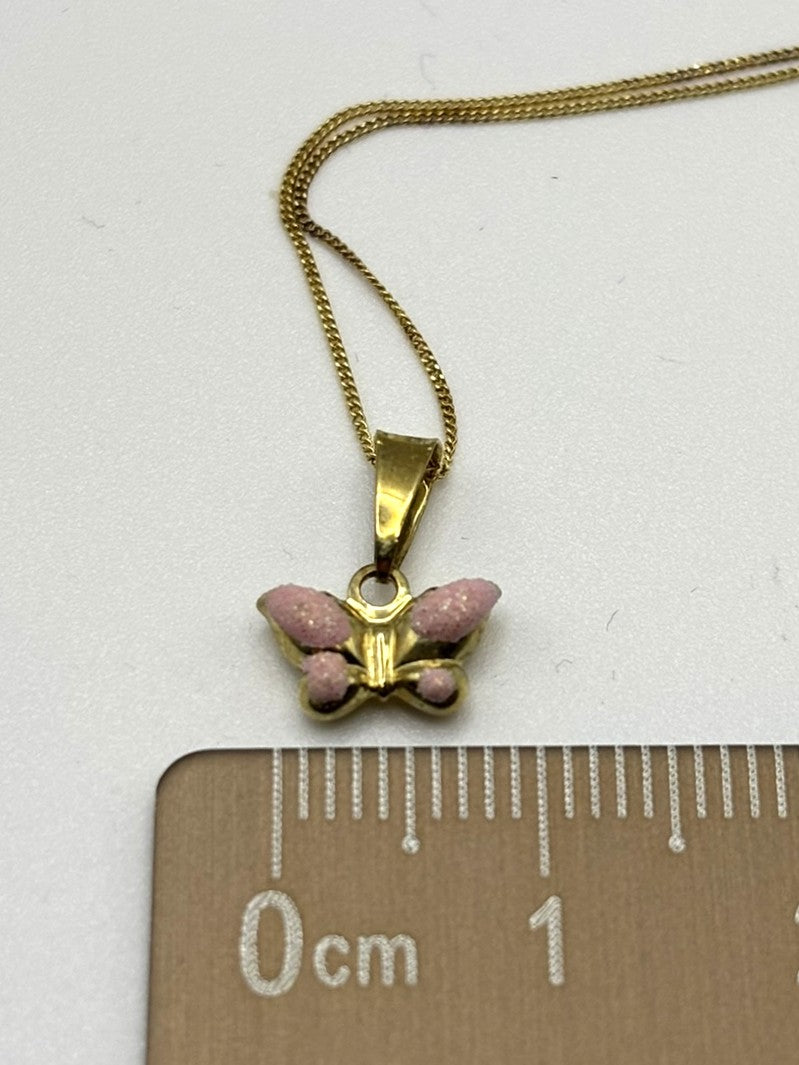 9ct Yellow Gold Petite Butterfly Pendant with Pink Sparkling Wings