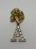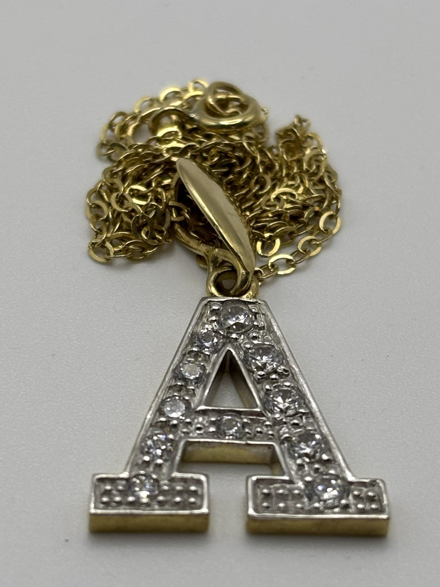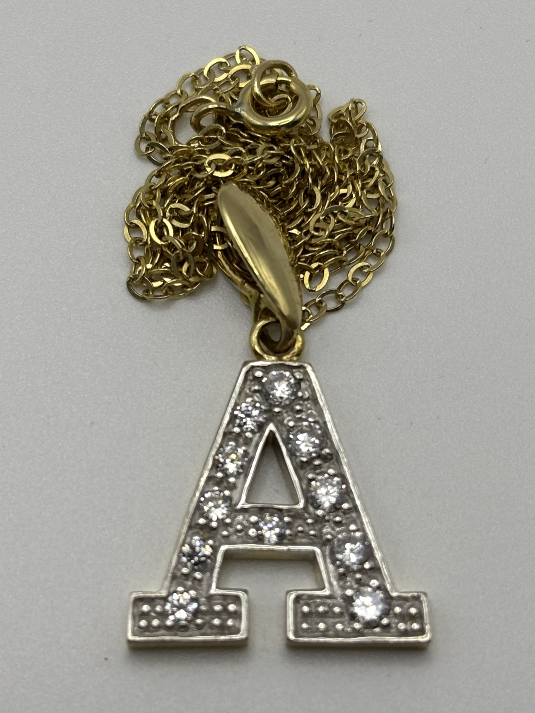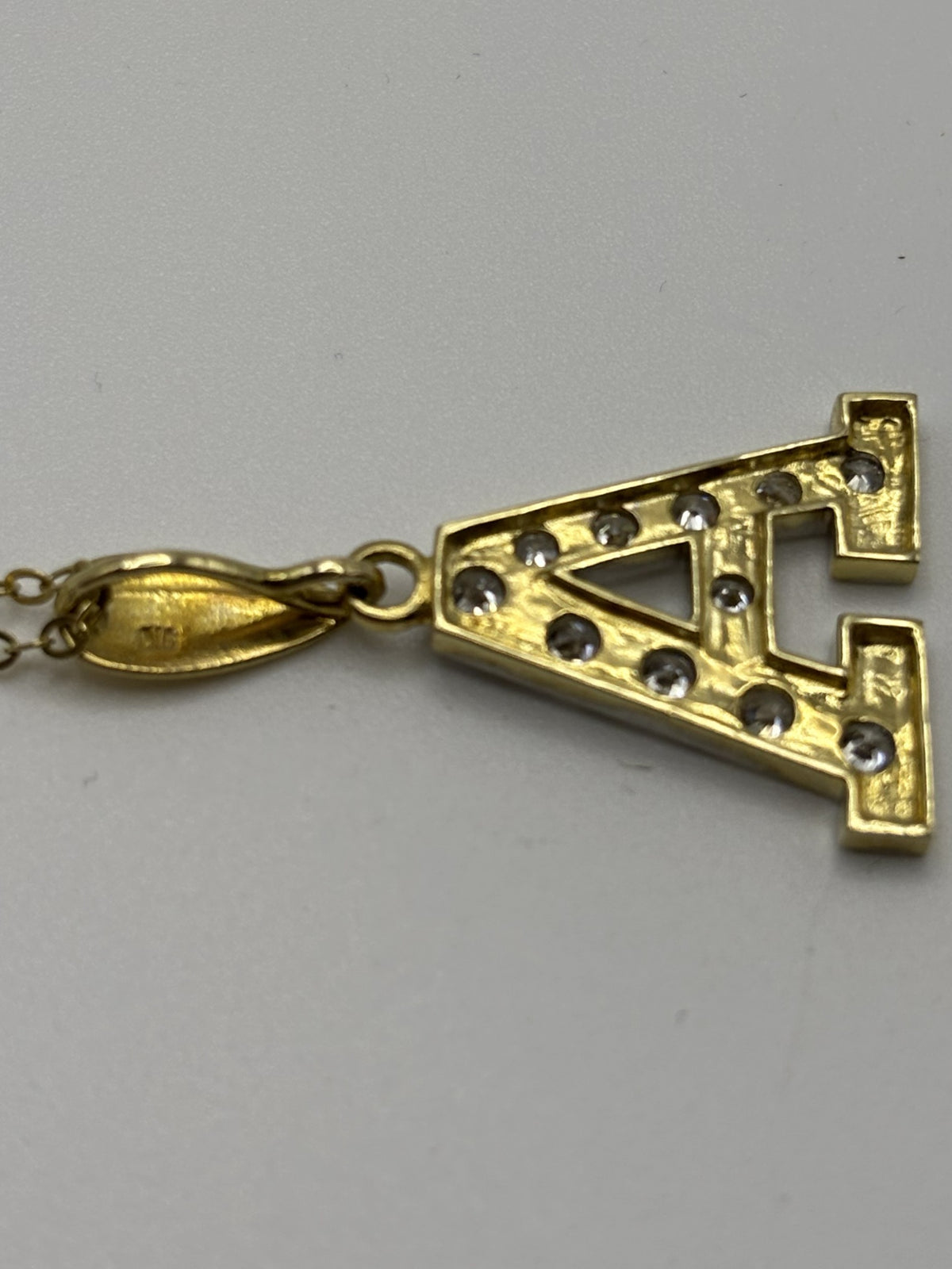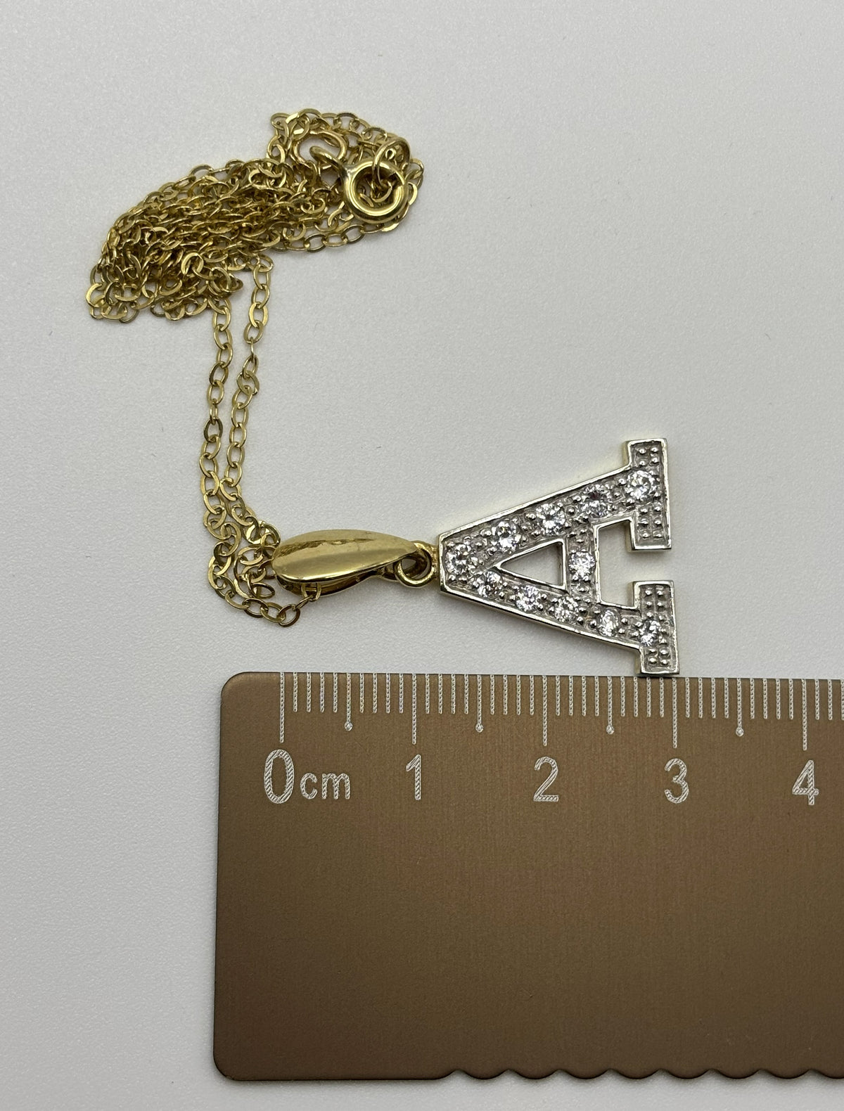 9ct Yellow Gold BIG ‘A’ Initial Pendant and Chain Necklace with Sparkling Stones