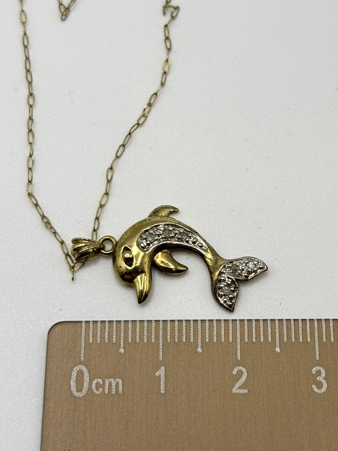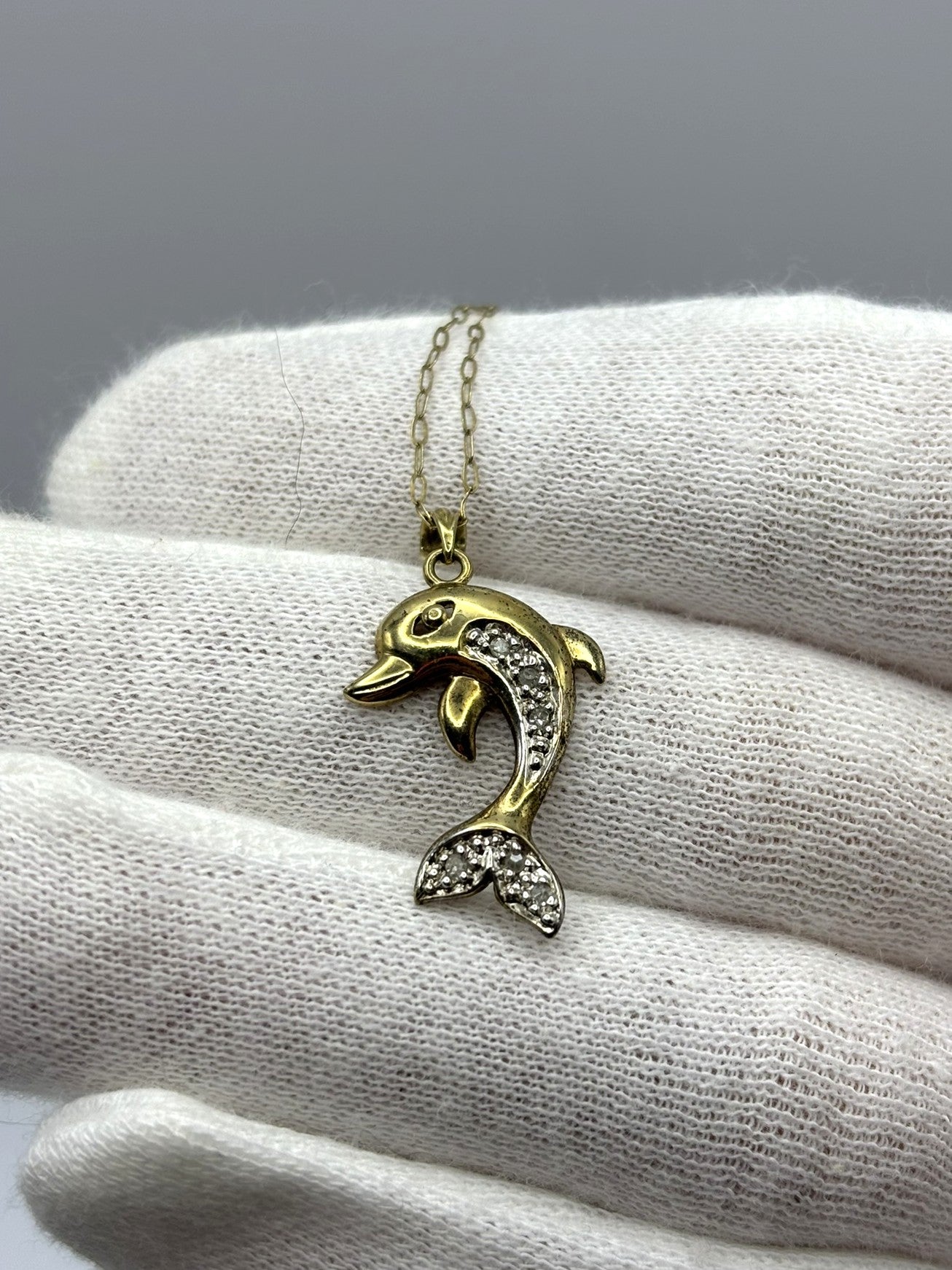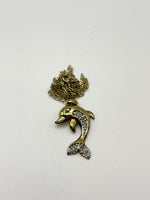 9ct Yellow Gold Beautiful Sparkling Diamond Dolphin Pendant with Chain