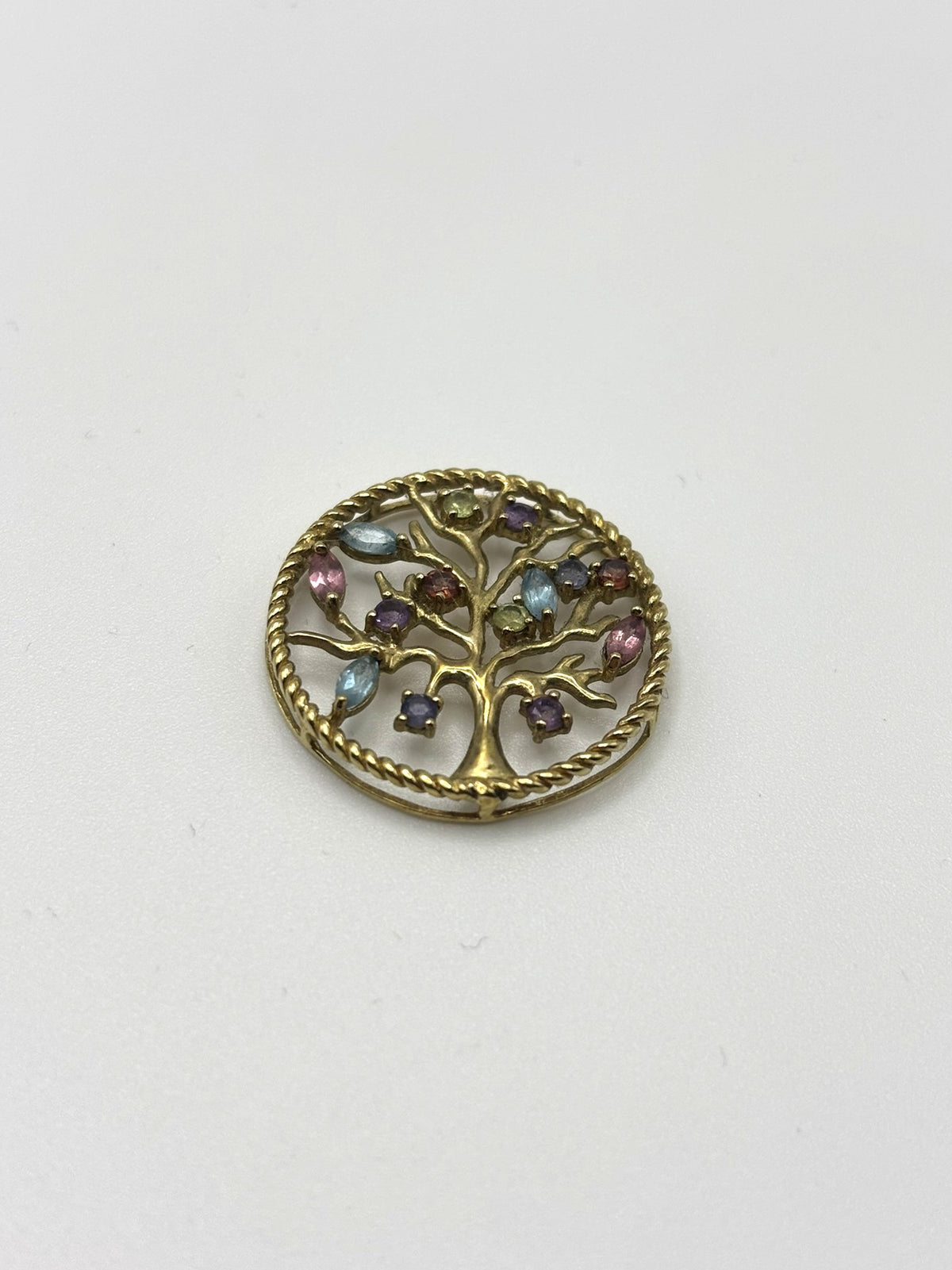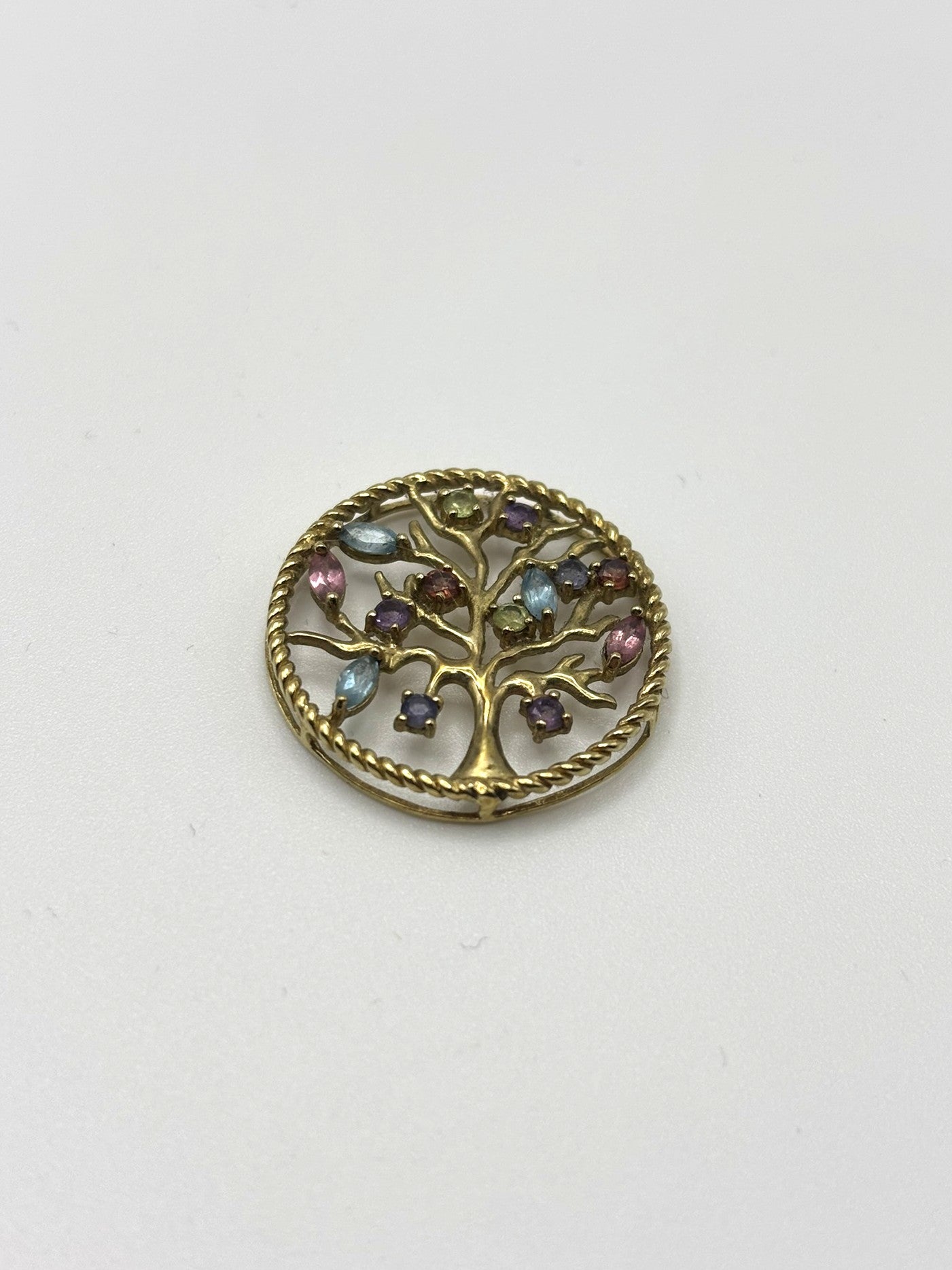 9ct Yellow Gold Multi-Gem Tree Of Life Pendant