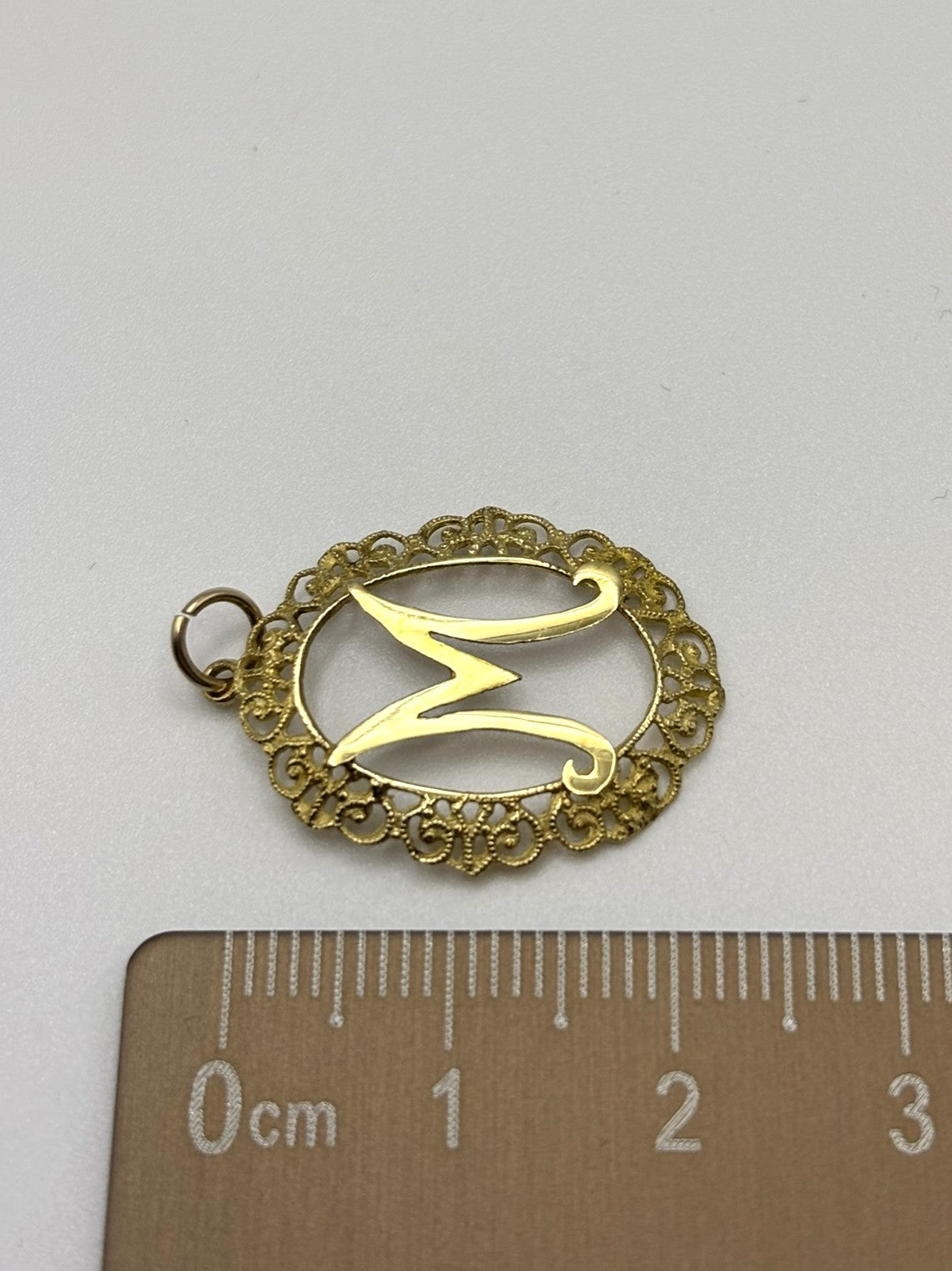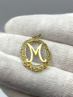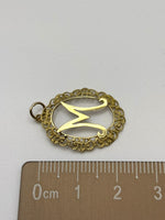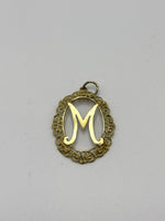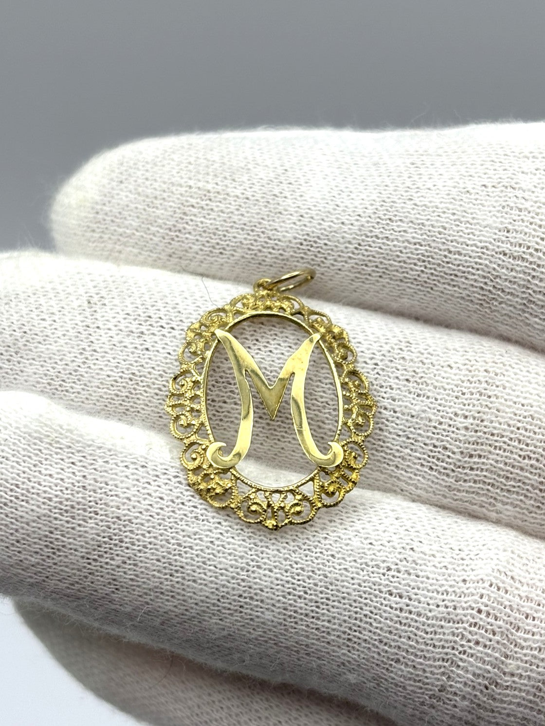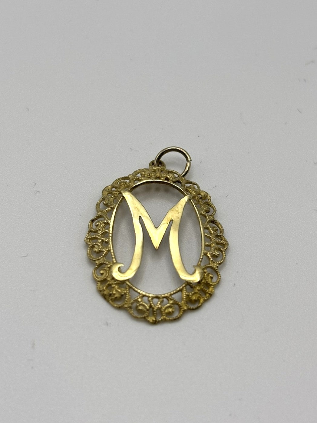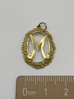 9ct Yellow Gold Vintage Filigree Letter M Monogram Oval Pendant