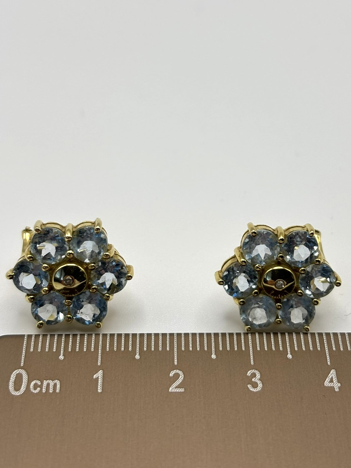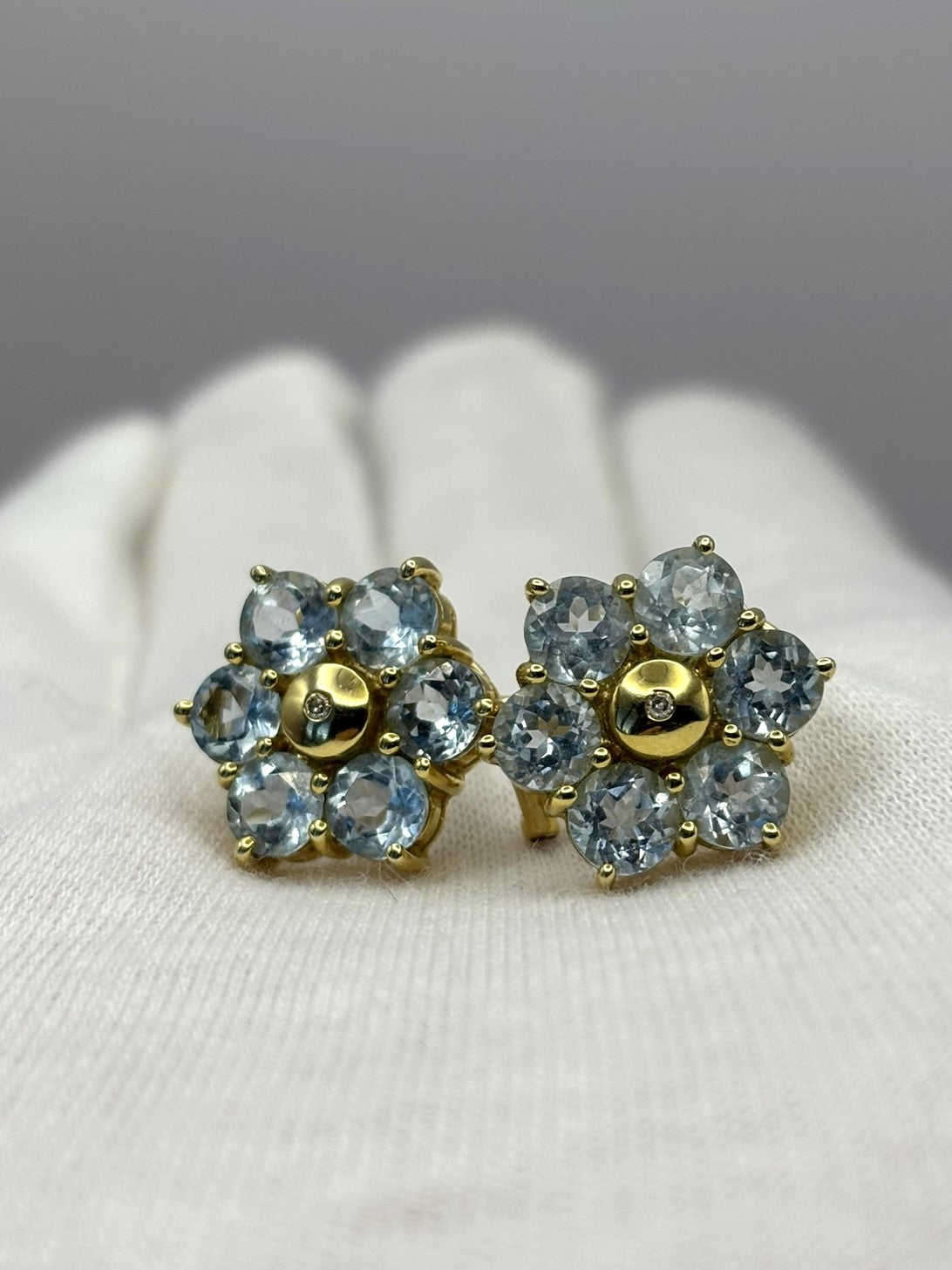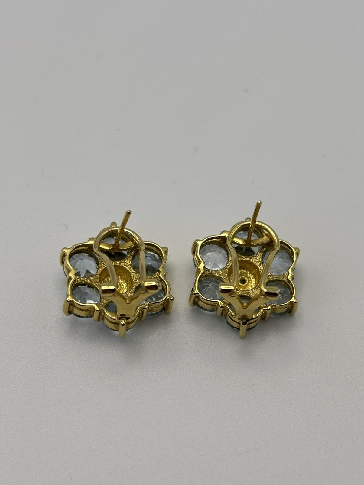 14ct Yellow Gold and Aquamarine BIG And SO STUNNING Flower Earrings