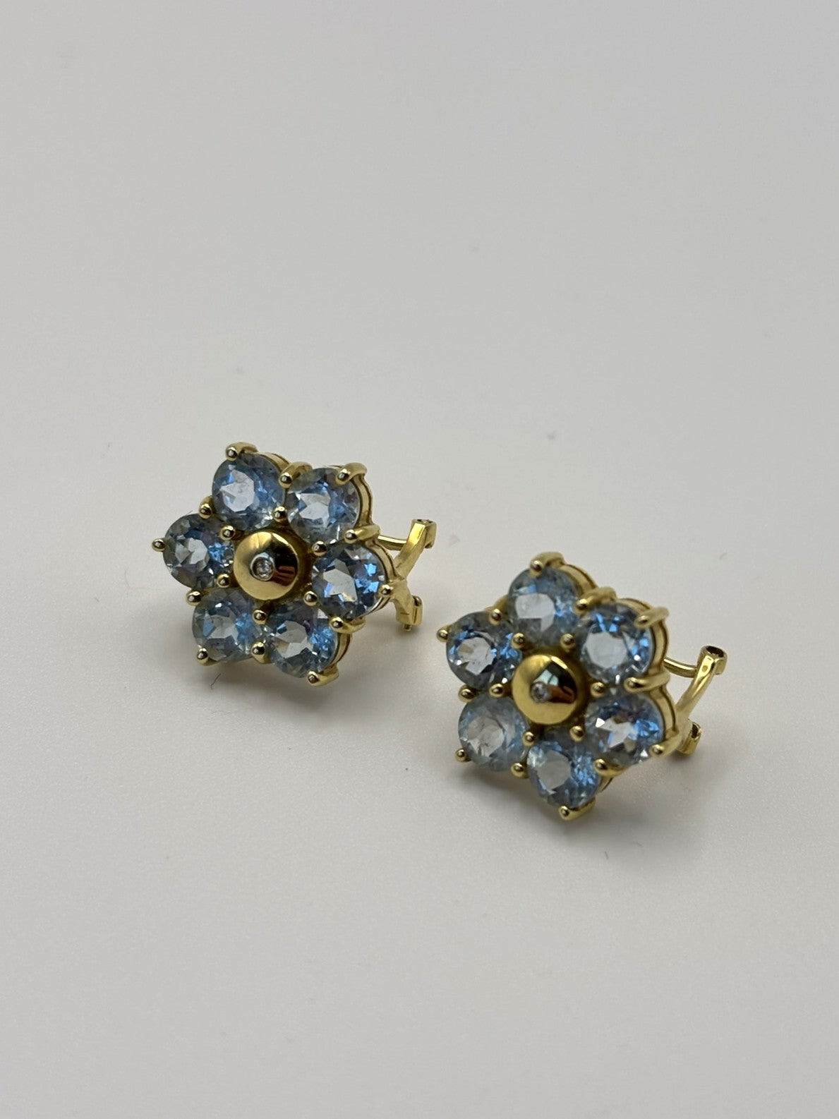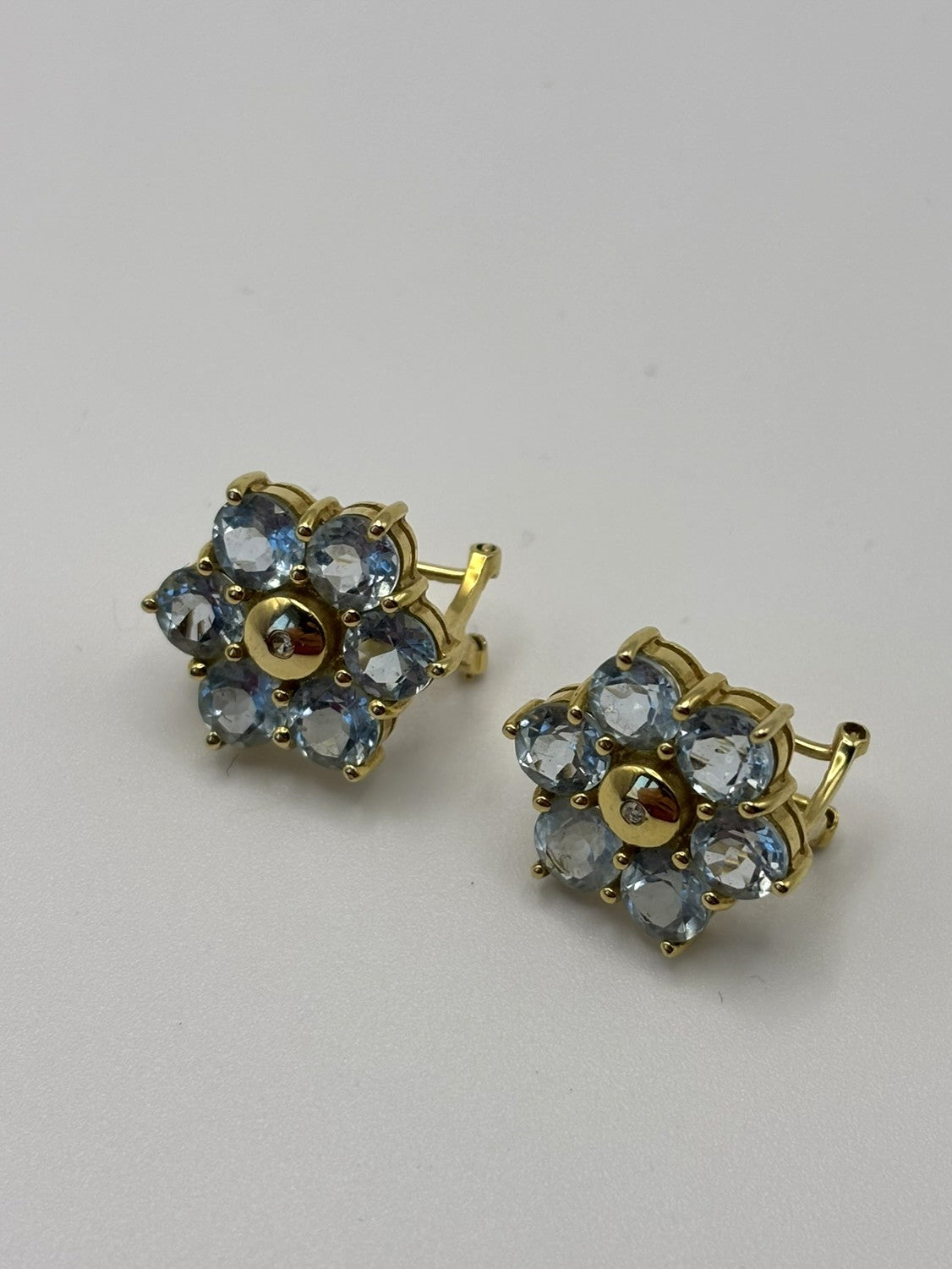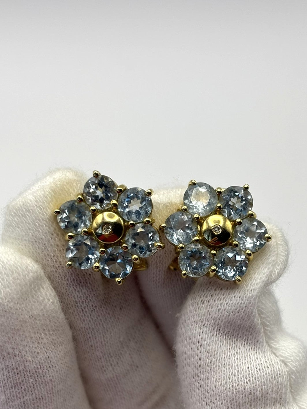 14ct Yellow Gold and Aquamarine BIG And SO STUNNING Flower Earrings