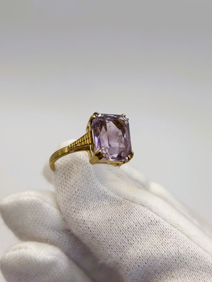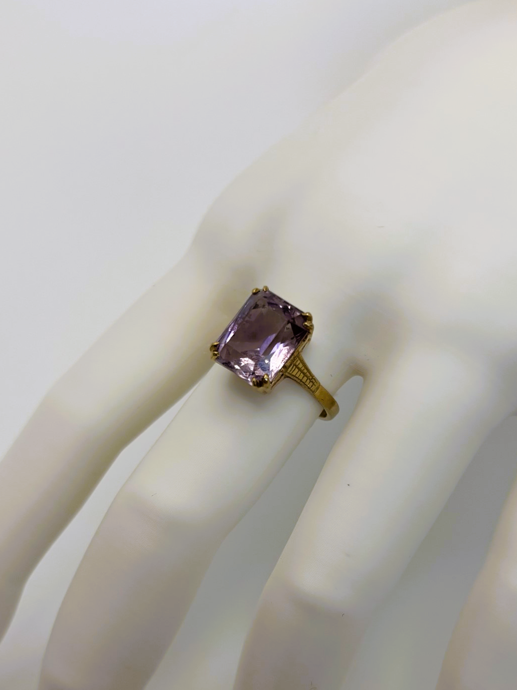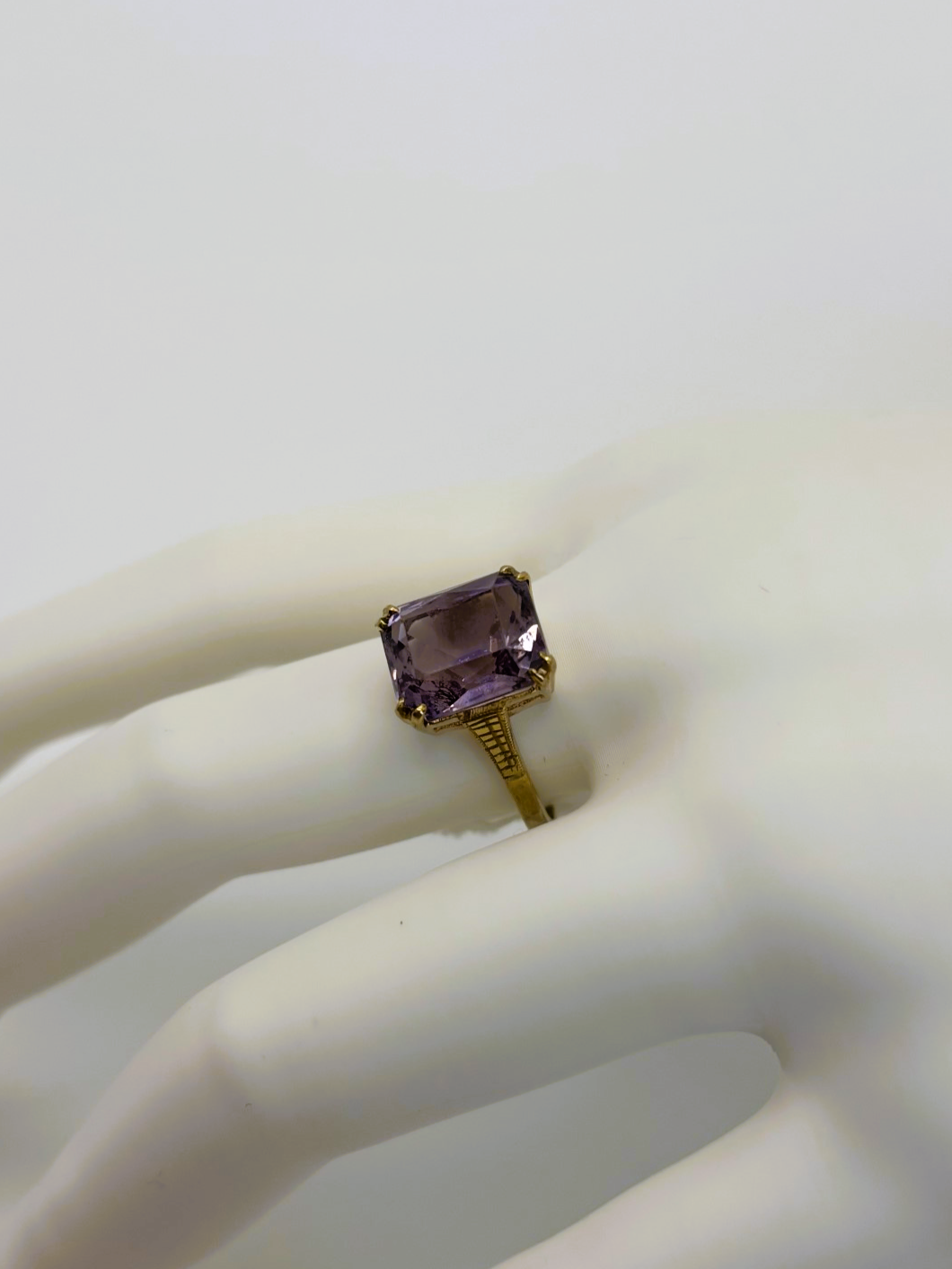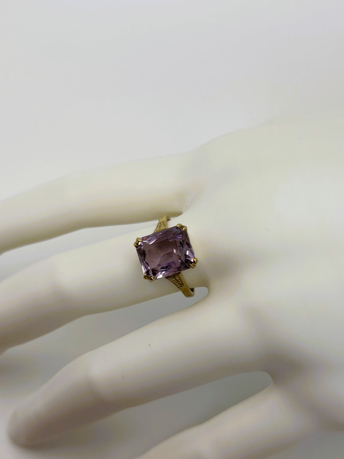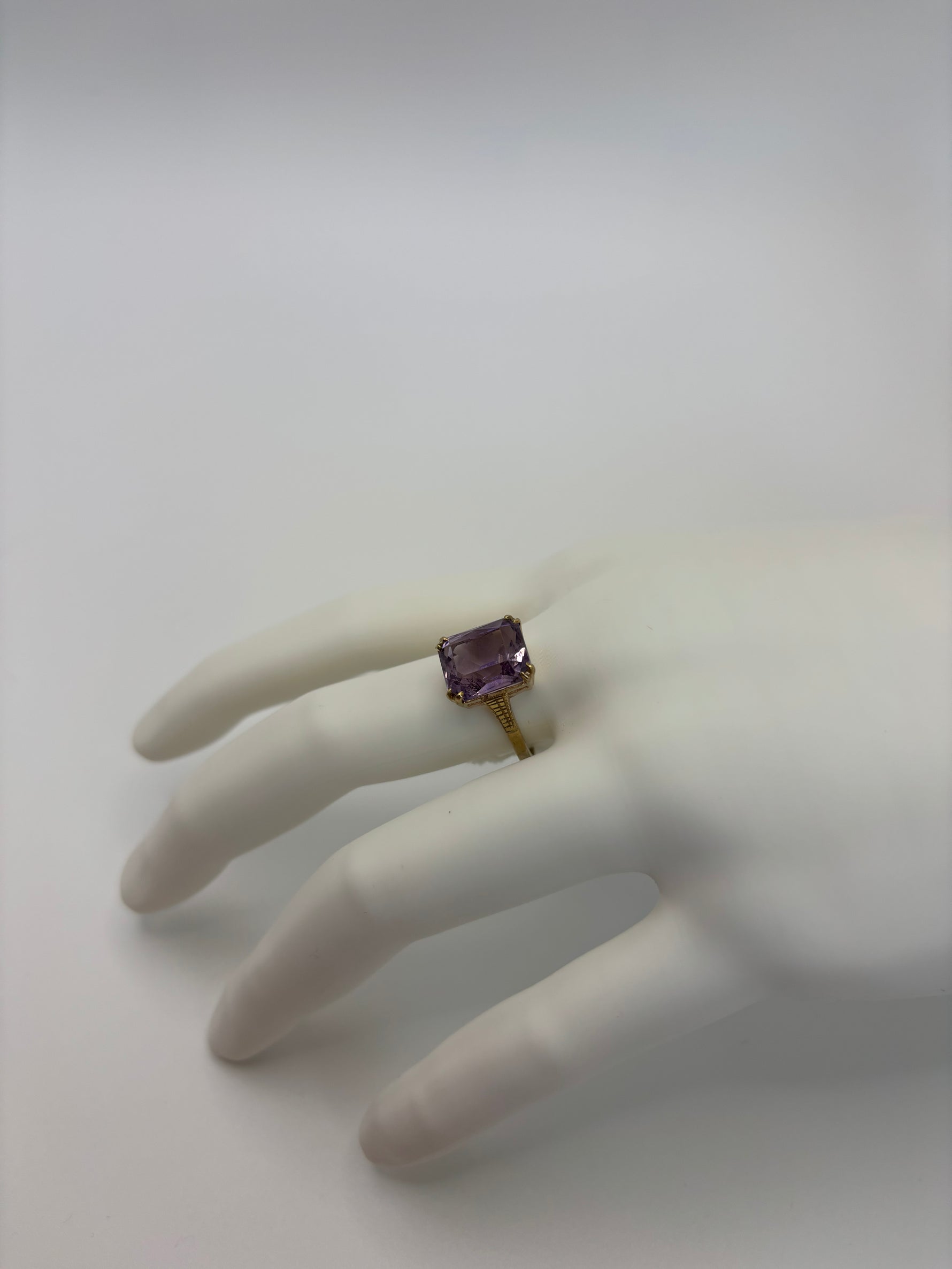 9ct Yellow Gold Stunning Rectangle-Shaped Amethyst Ring