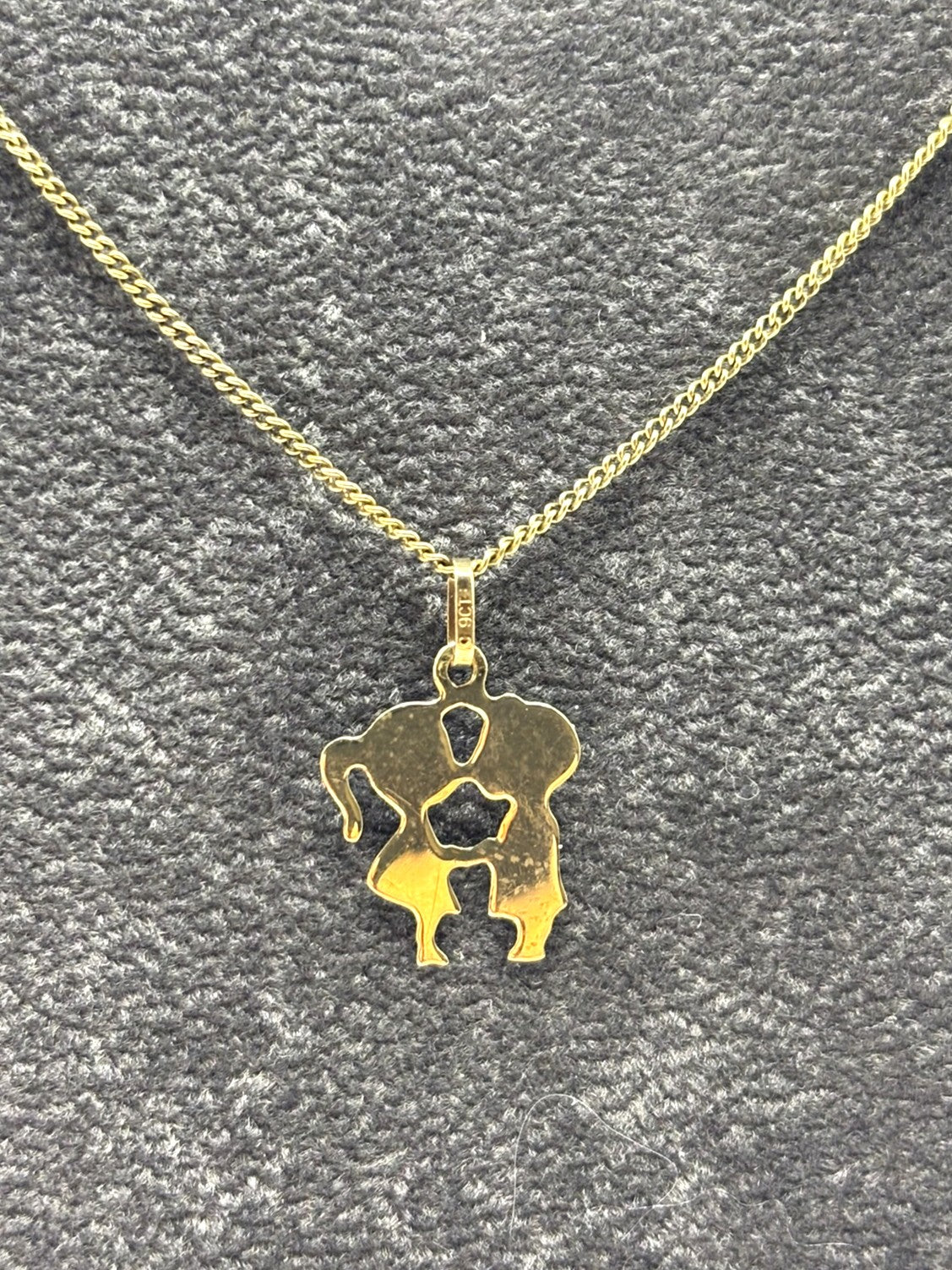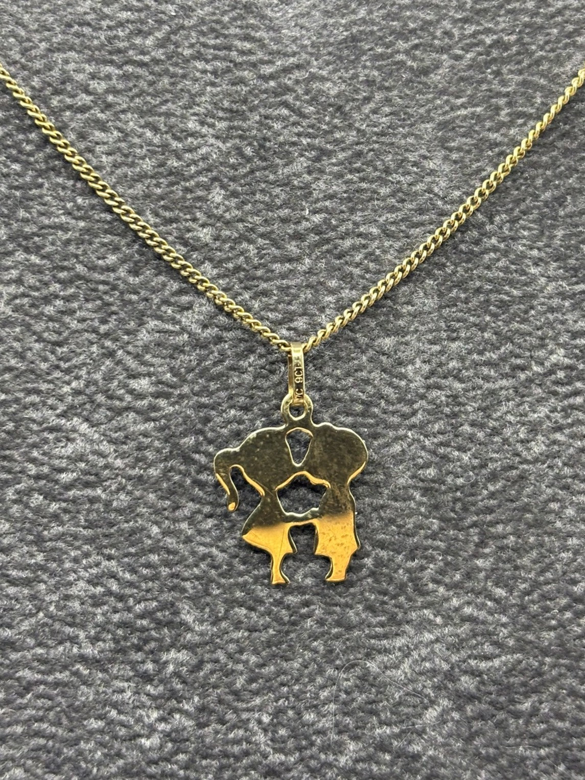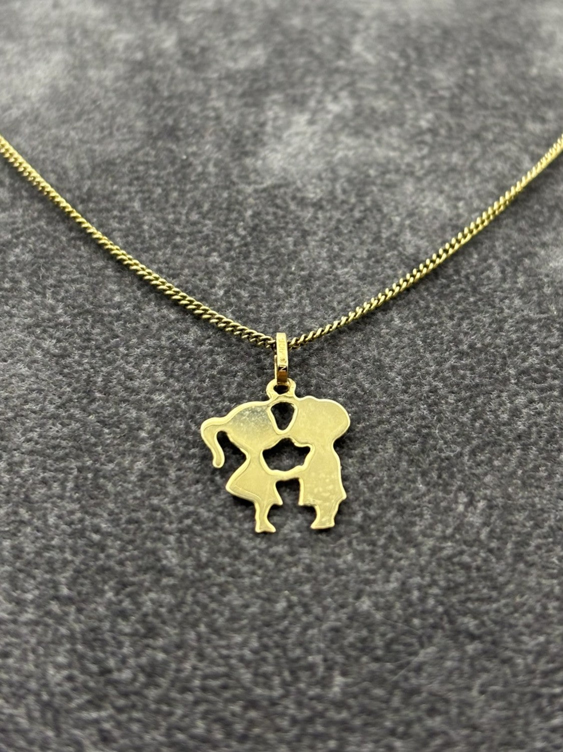 9ct Yellow Gold Super Cute Girl Boy Kissing Pendant & Chain