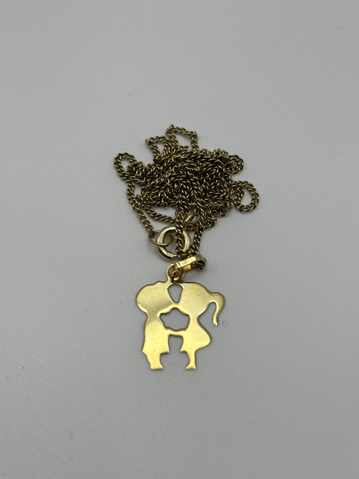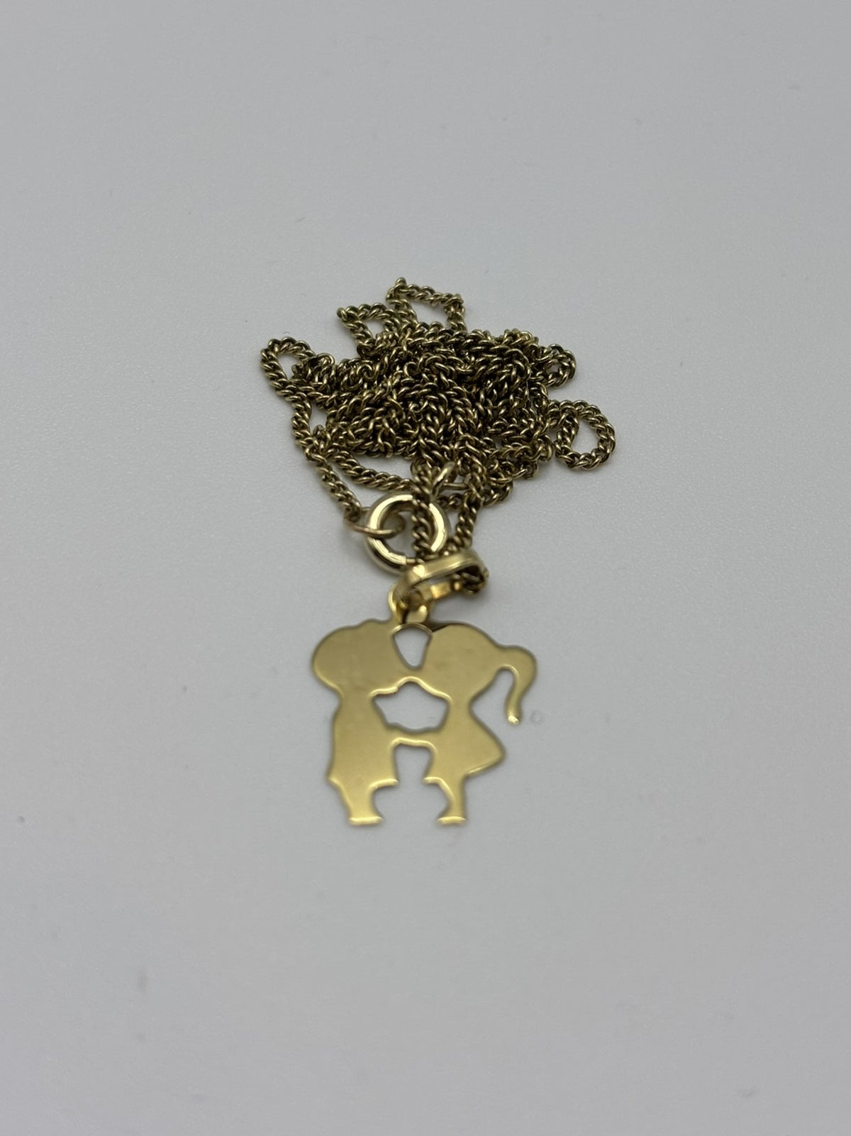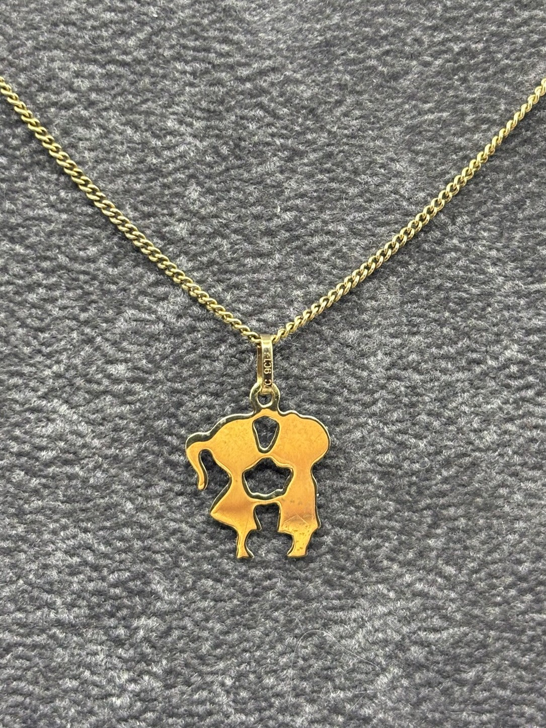 9ct Yellow Gold Super Cute Girl Boy Kissing Pendant & Chain