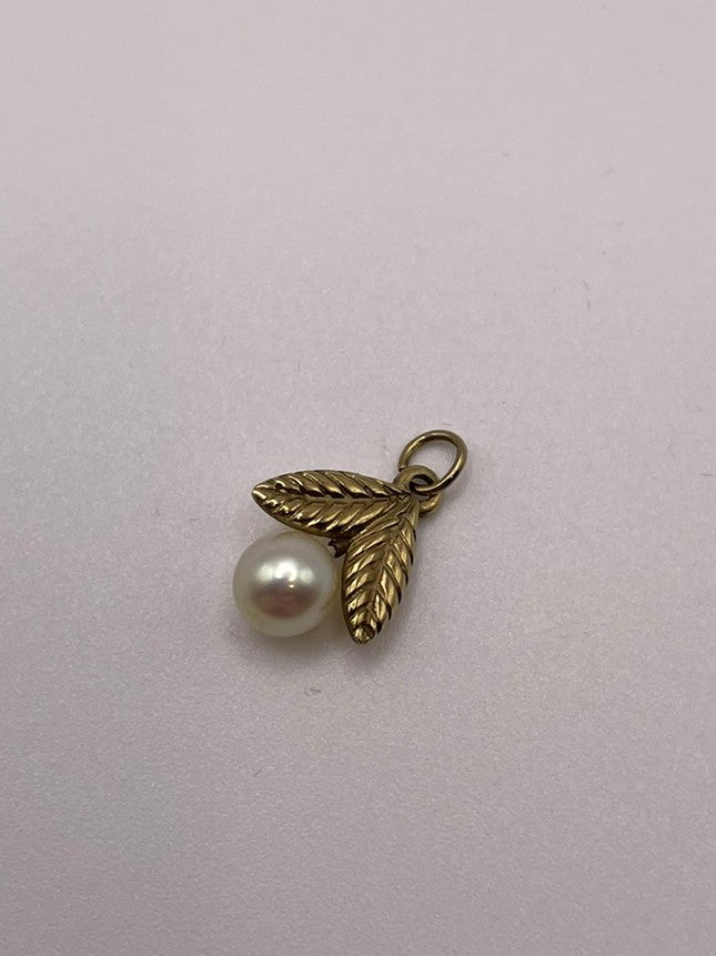 9ct Yellow Gold Petite Pearl & Gold Leaves Pendant