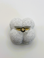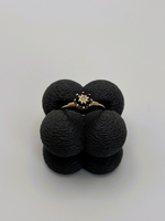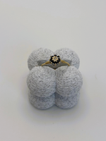 Condition: The floral cluster is in perfect condition. The band is misshapen — it can still be worn, but ideally should be straightened. If you’d like us to arrange the repair for you, just get in touch and we’ll be happy to help.