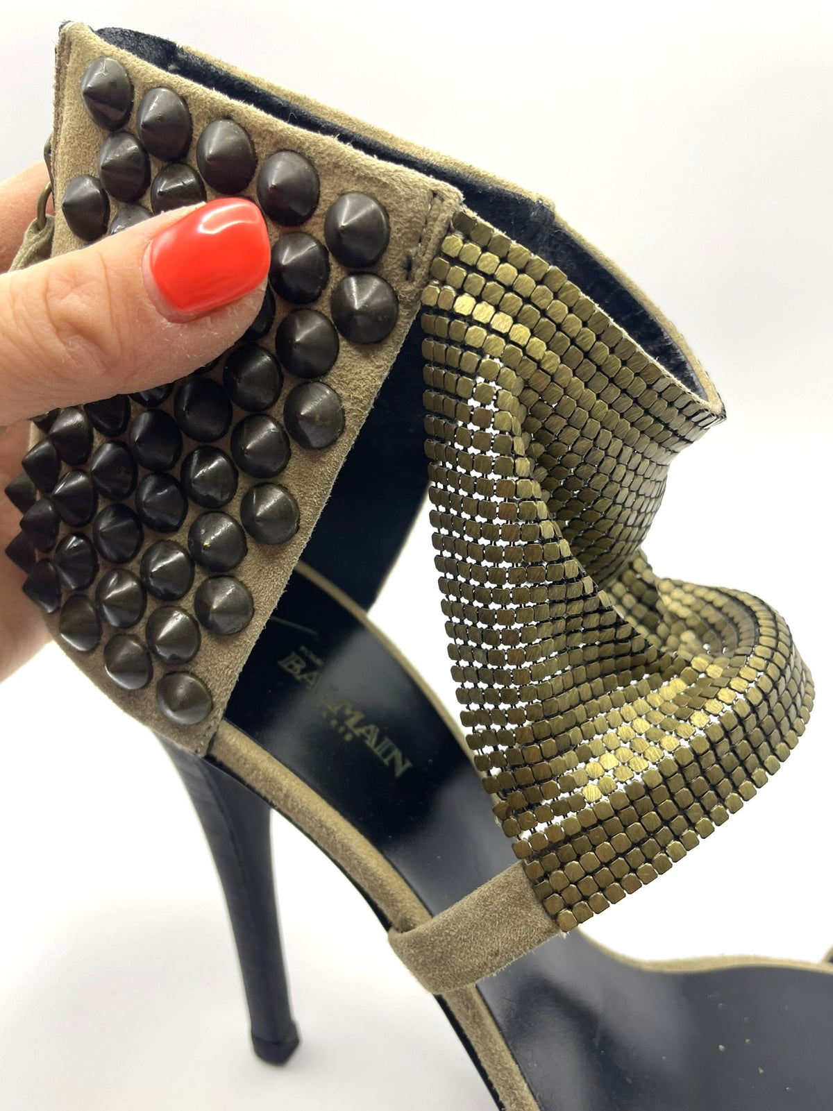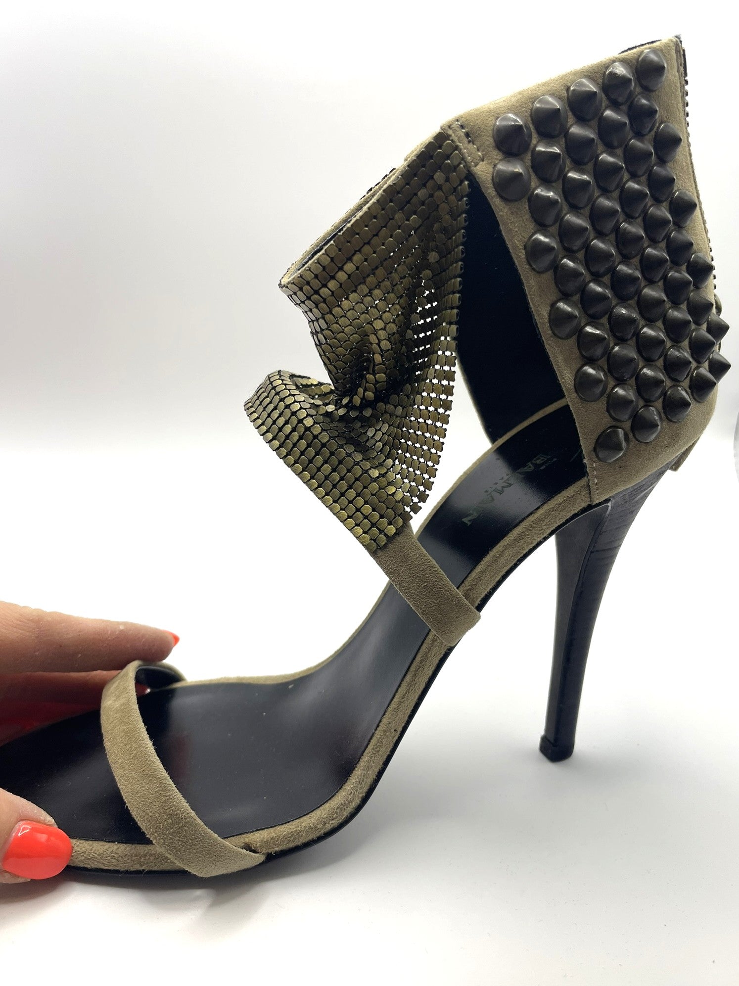 These heels are absolutely incredible — beige suede paired with Balmain’s famous chainmail mesh. They’re incredibly versatile, go with nearly every colour palette, and can elevate even the simplest outfit into something striking and fashion-forward. From street style to evening events, they deliver every time.