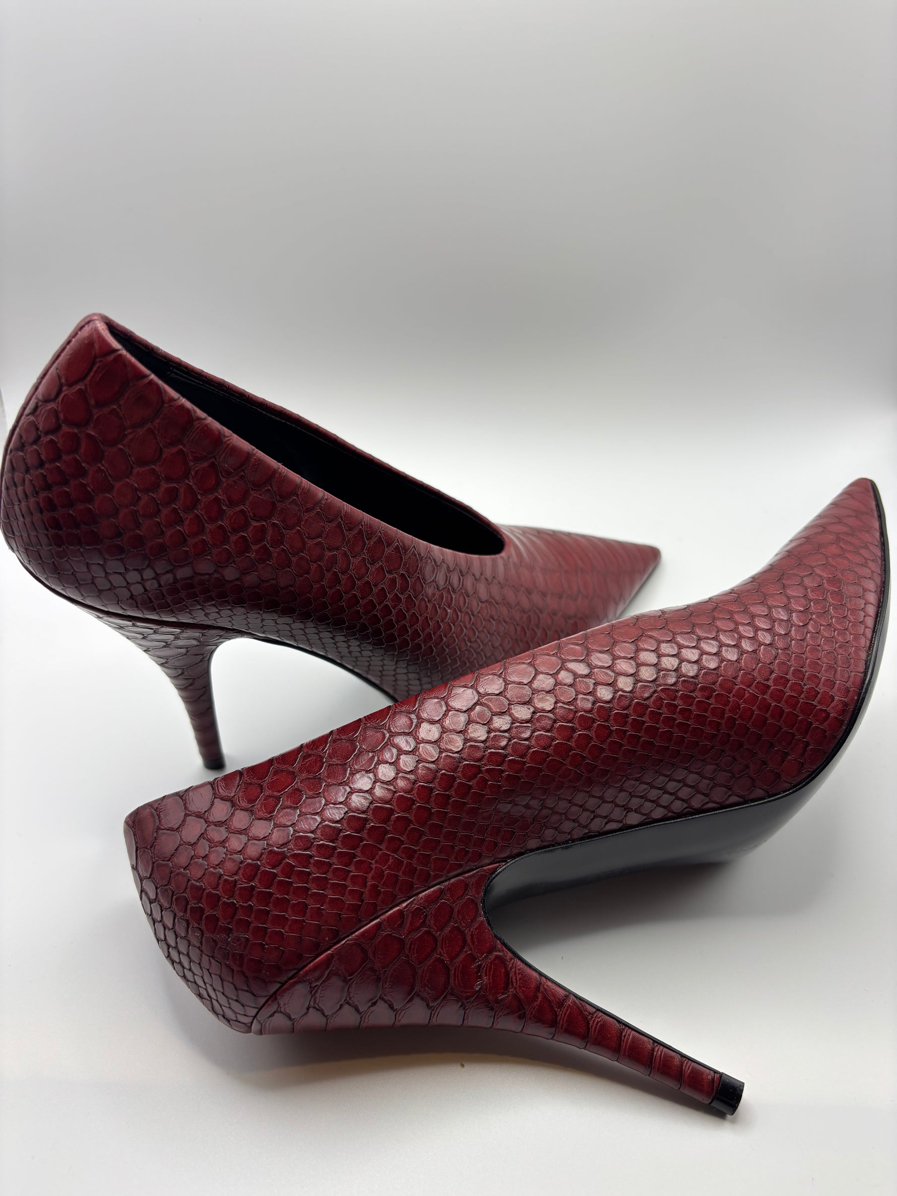 Stella McCartney Burgundy Pointed Heels Snakeskin Effect Stilettos UK3.5