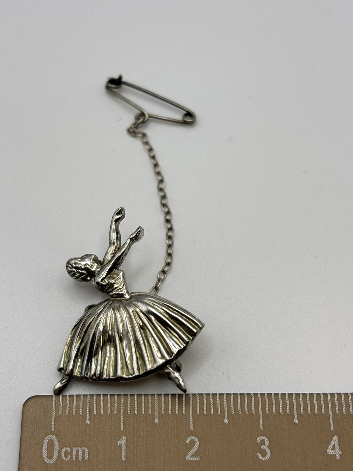 925 Sterling Silver Vintage Ballerina Brooch 1949