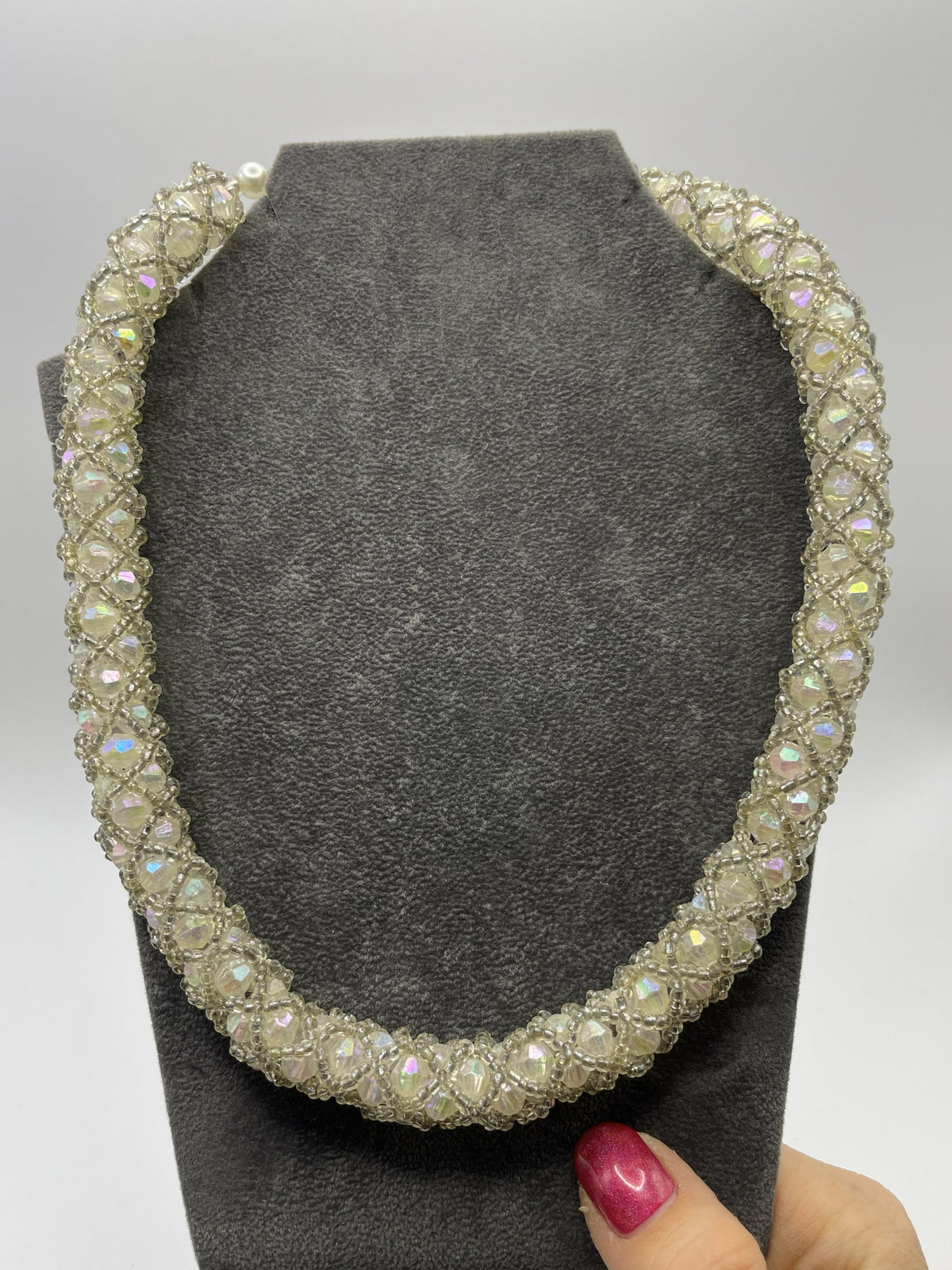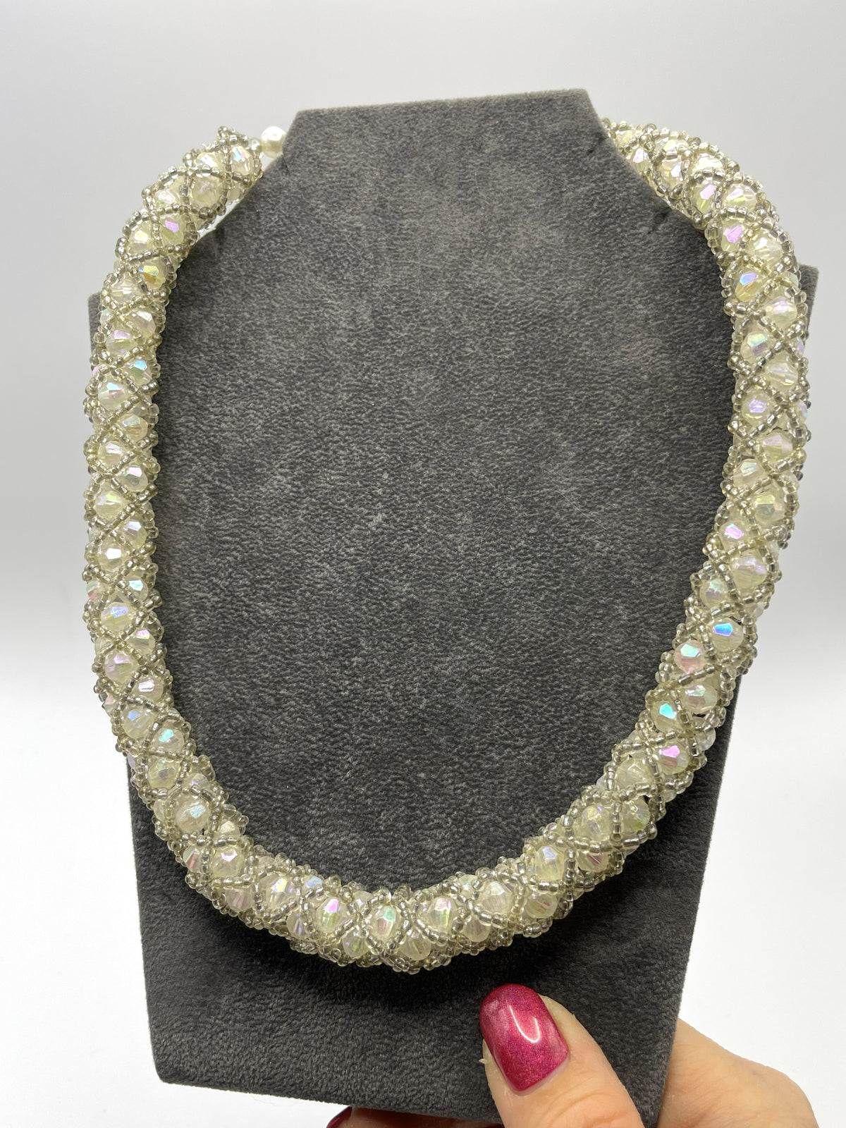 Beautiful Fascinating Chunky Glass Beads (Aurora Borealis) Necklace Featuring Big Beads Wrapped in Tiny Beads