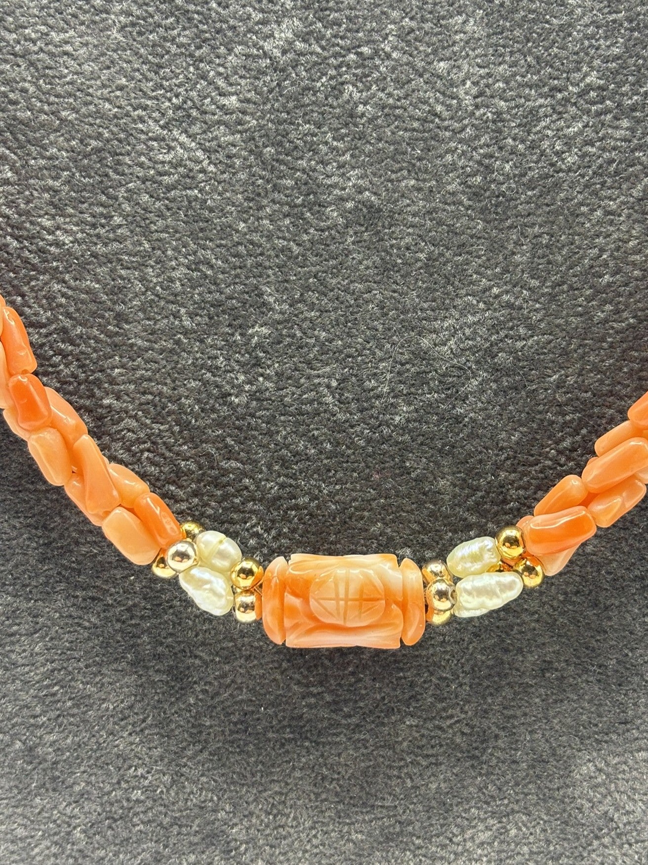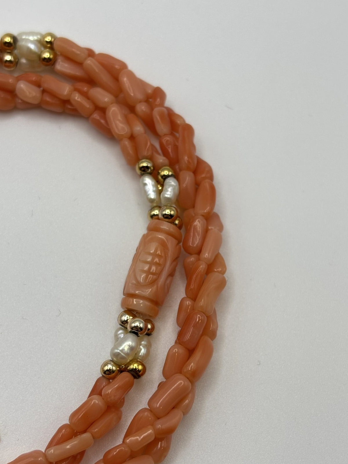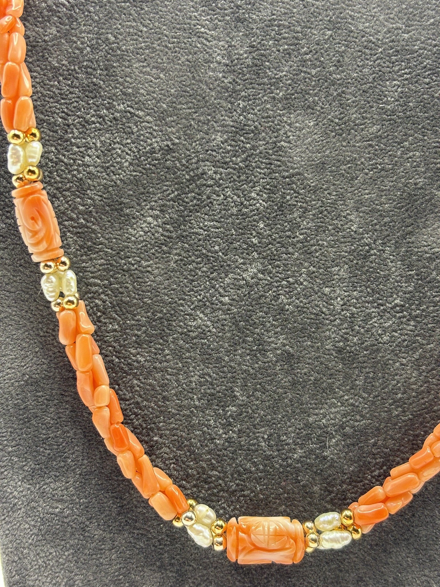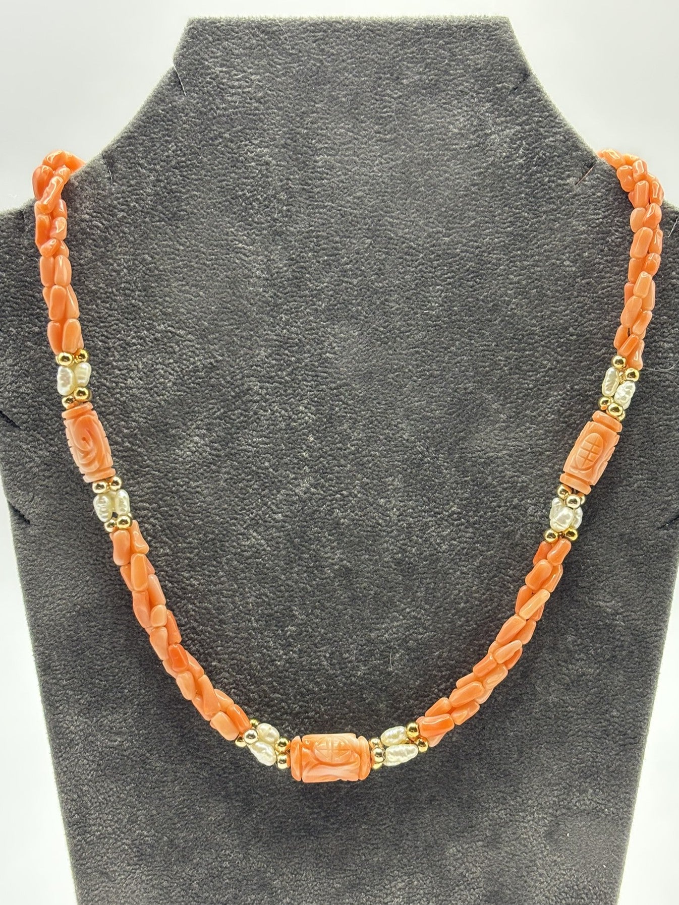 Beautiful Twisted Coral & Pearl Necklace with Carved Coral Beads