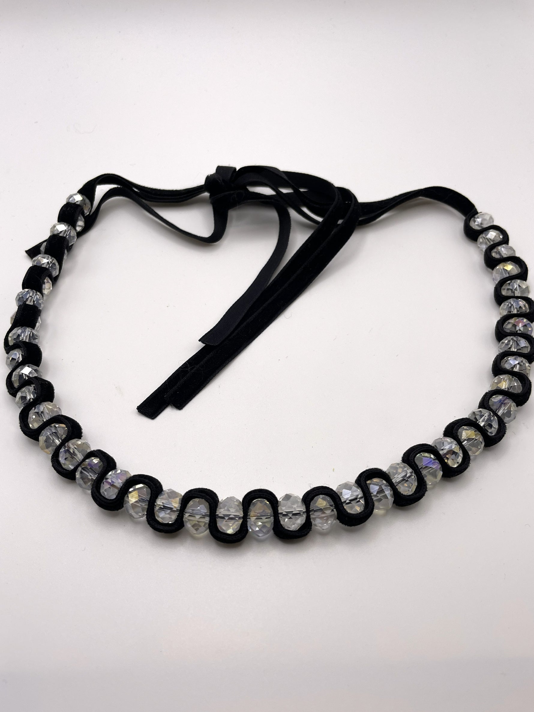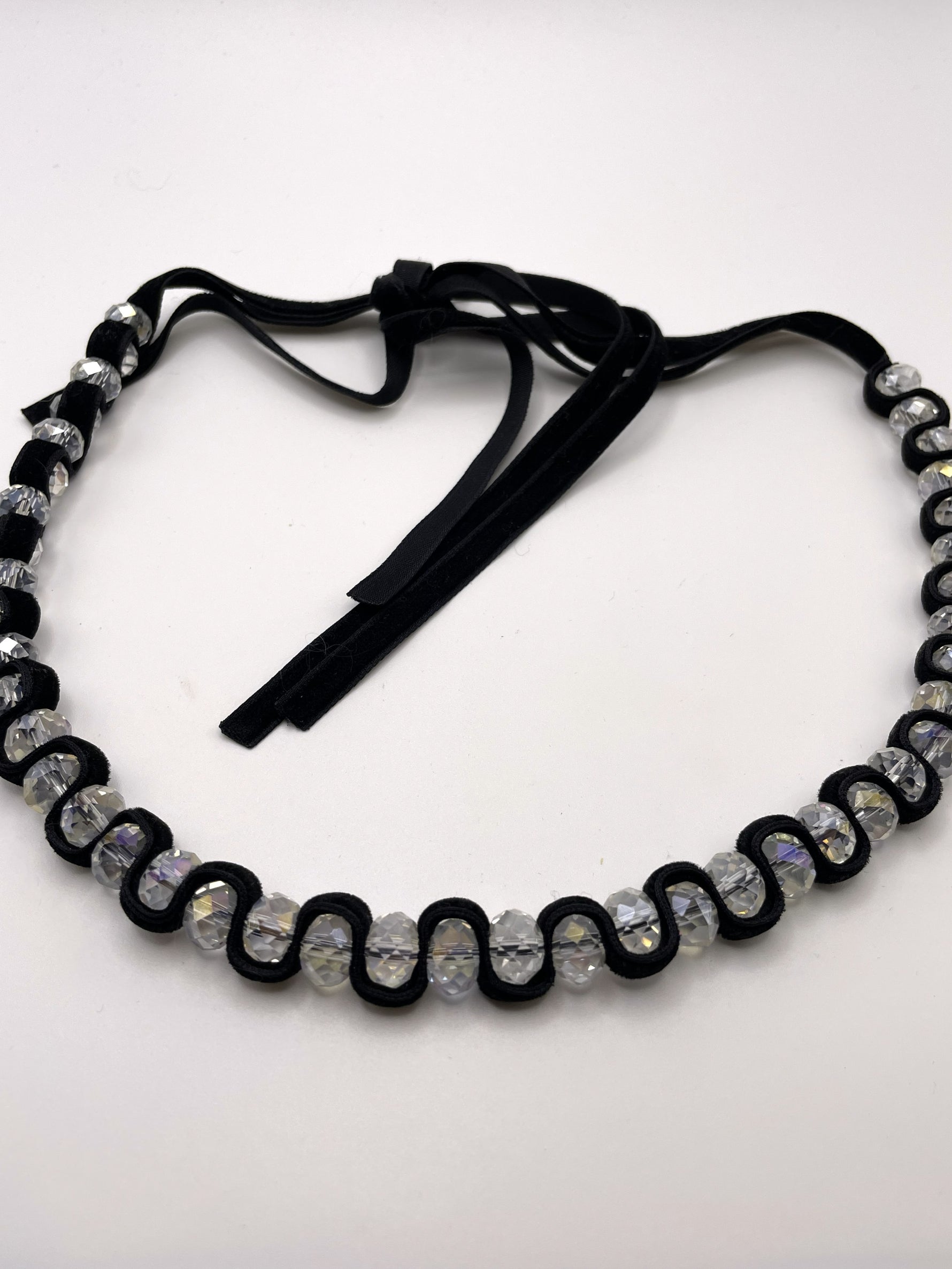 Material: Glass beads (Aurora Borealis finish), velvet ribbon